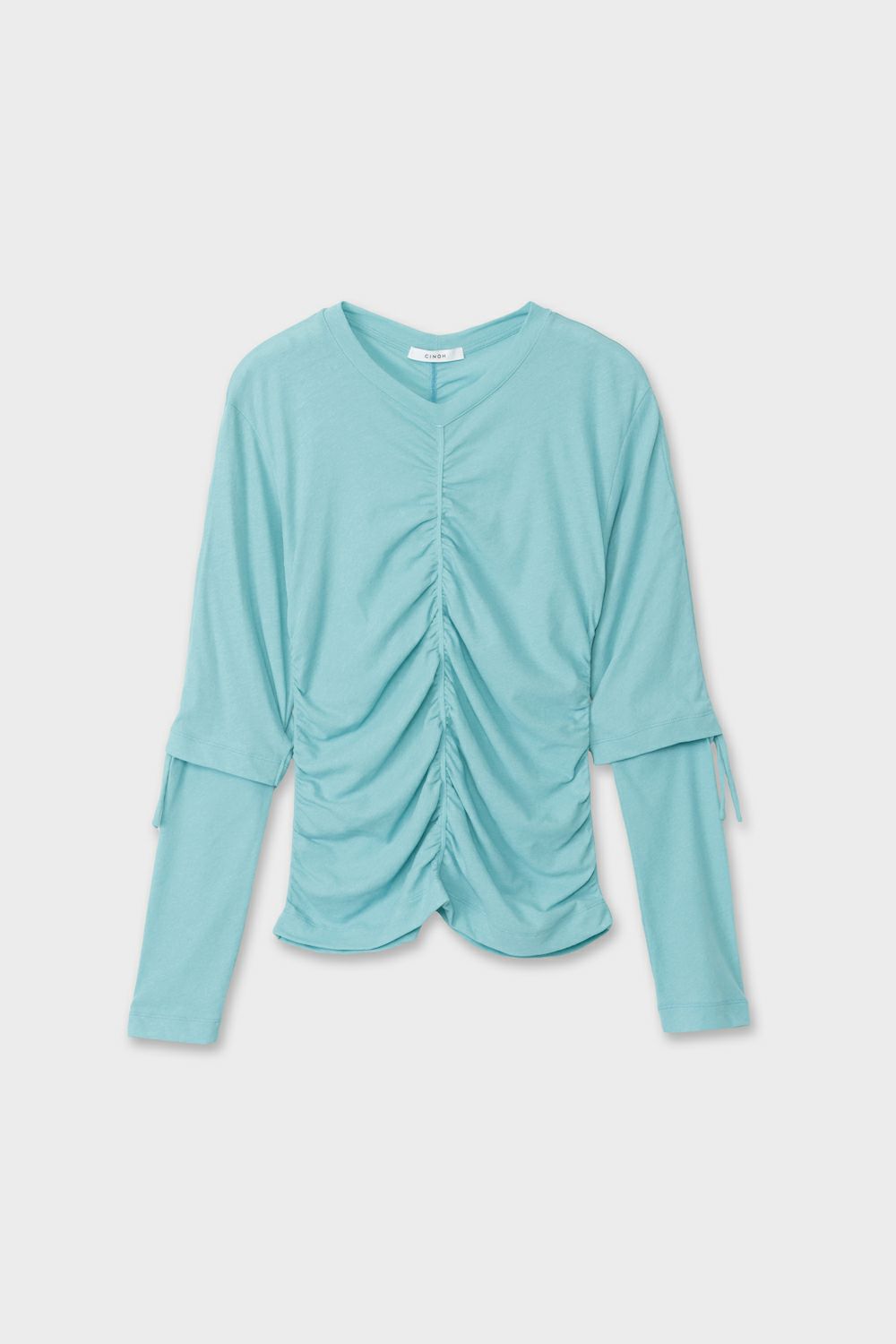 3. シャーリングレーヤードTシャツ[TURQUOISE]