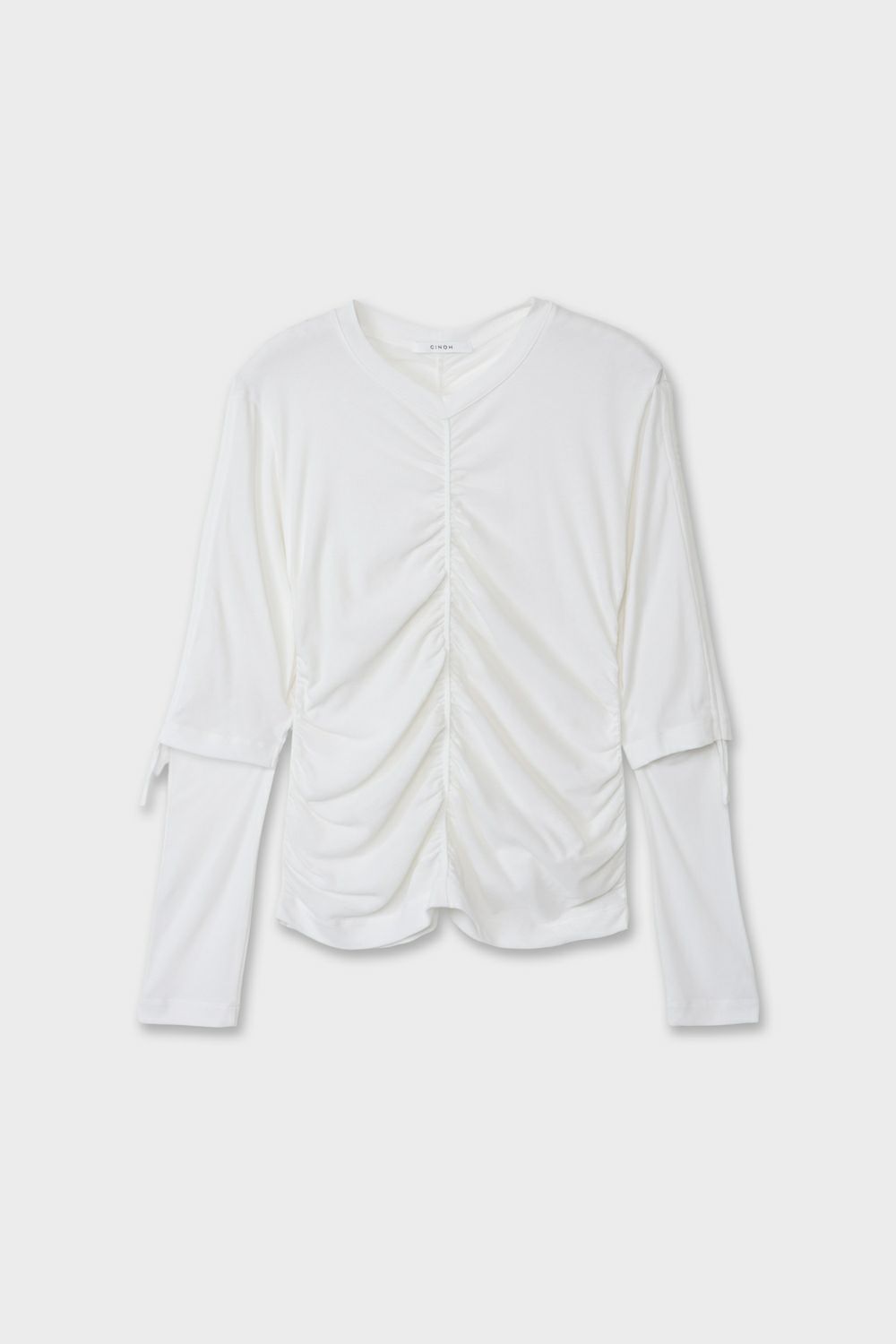 ・肘部分にスラッシュを施し、袖のギャザー分量を調整可能な仕様