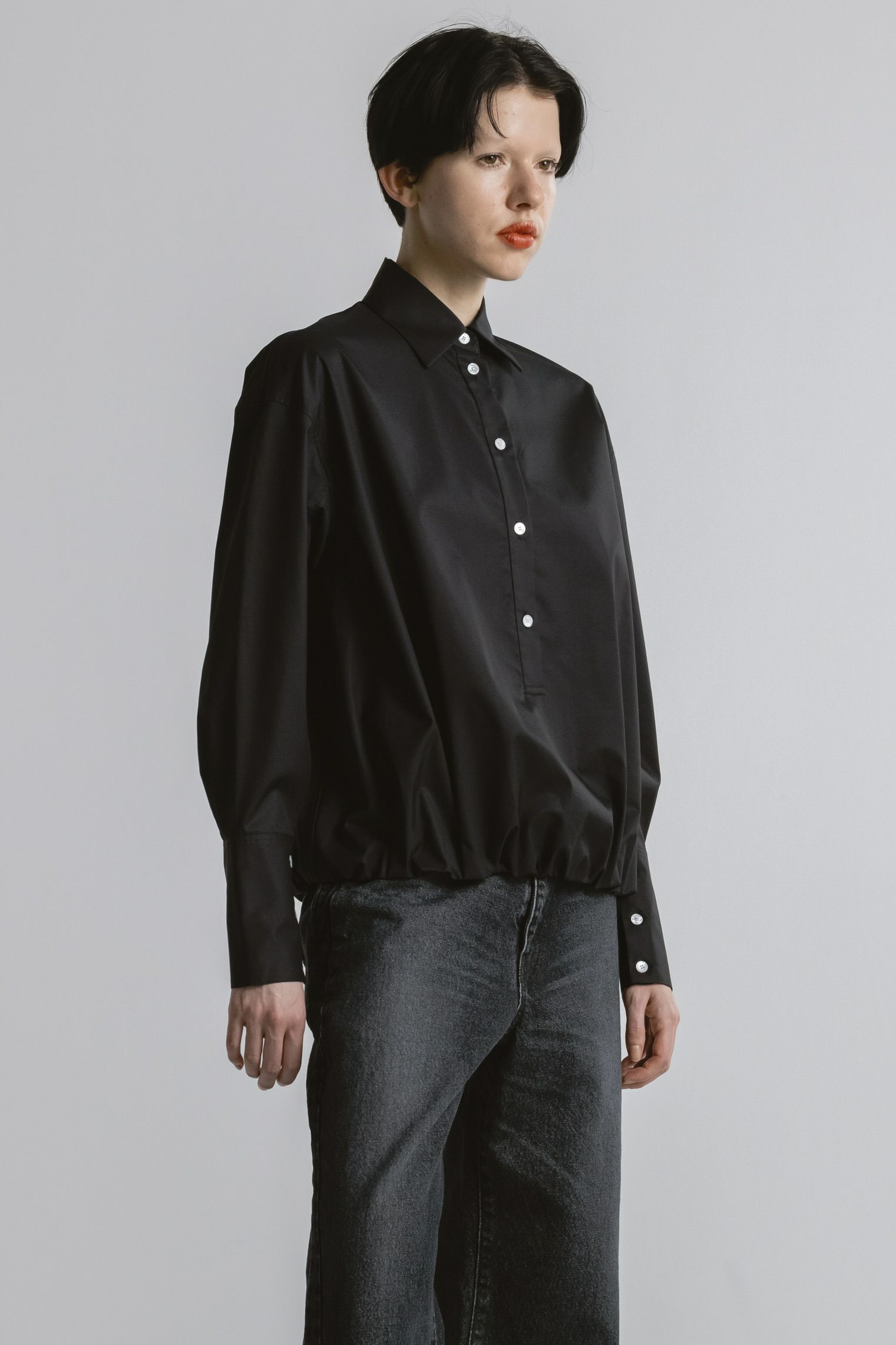 ・裾にはゴムギャザーを施し、緩やかな膨らみをもたせた丸みのあるシルエットに