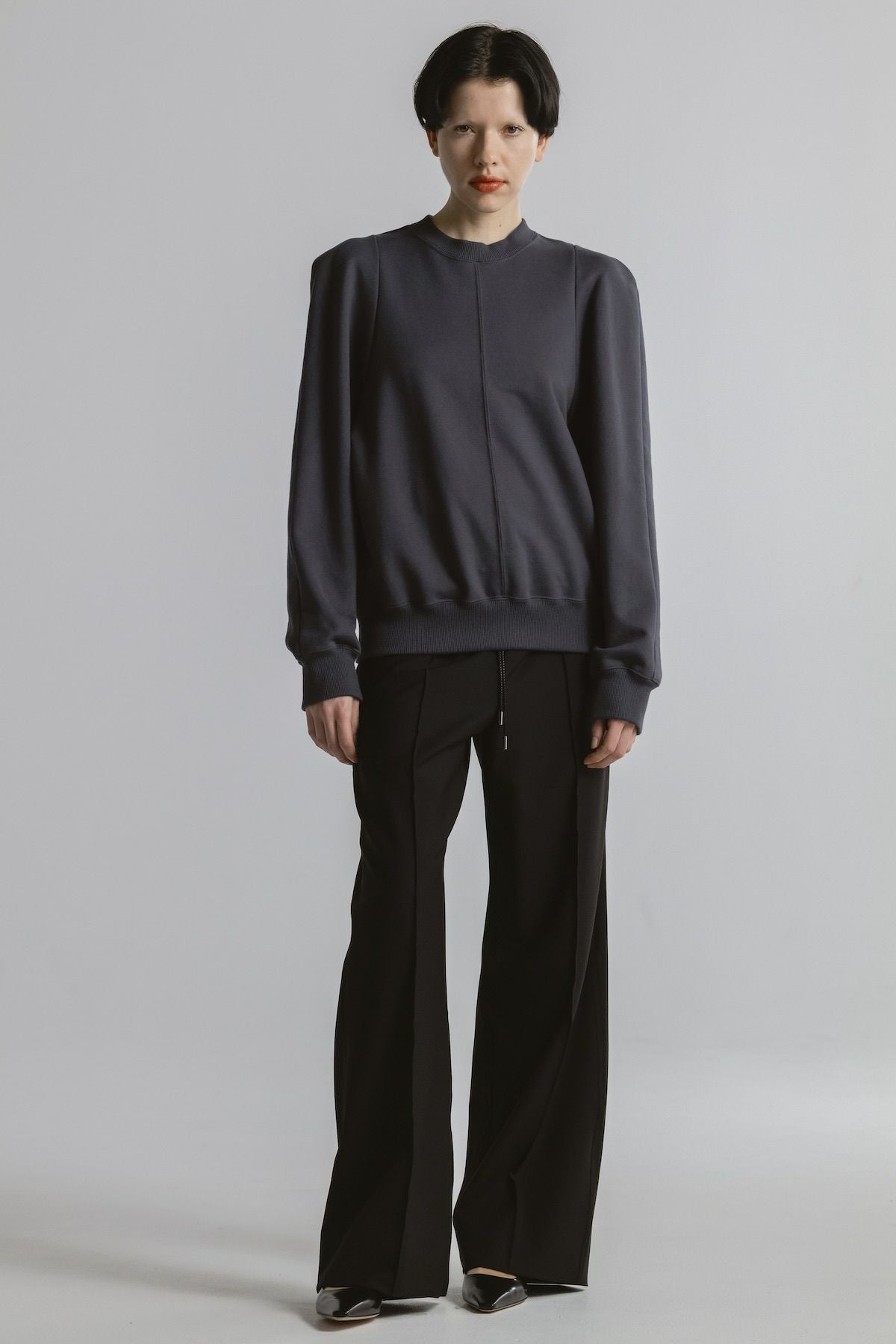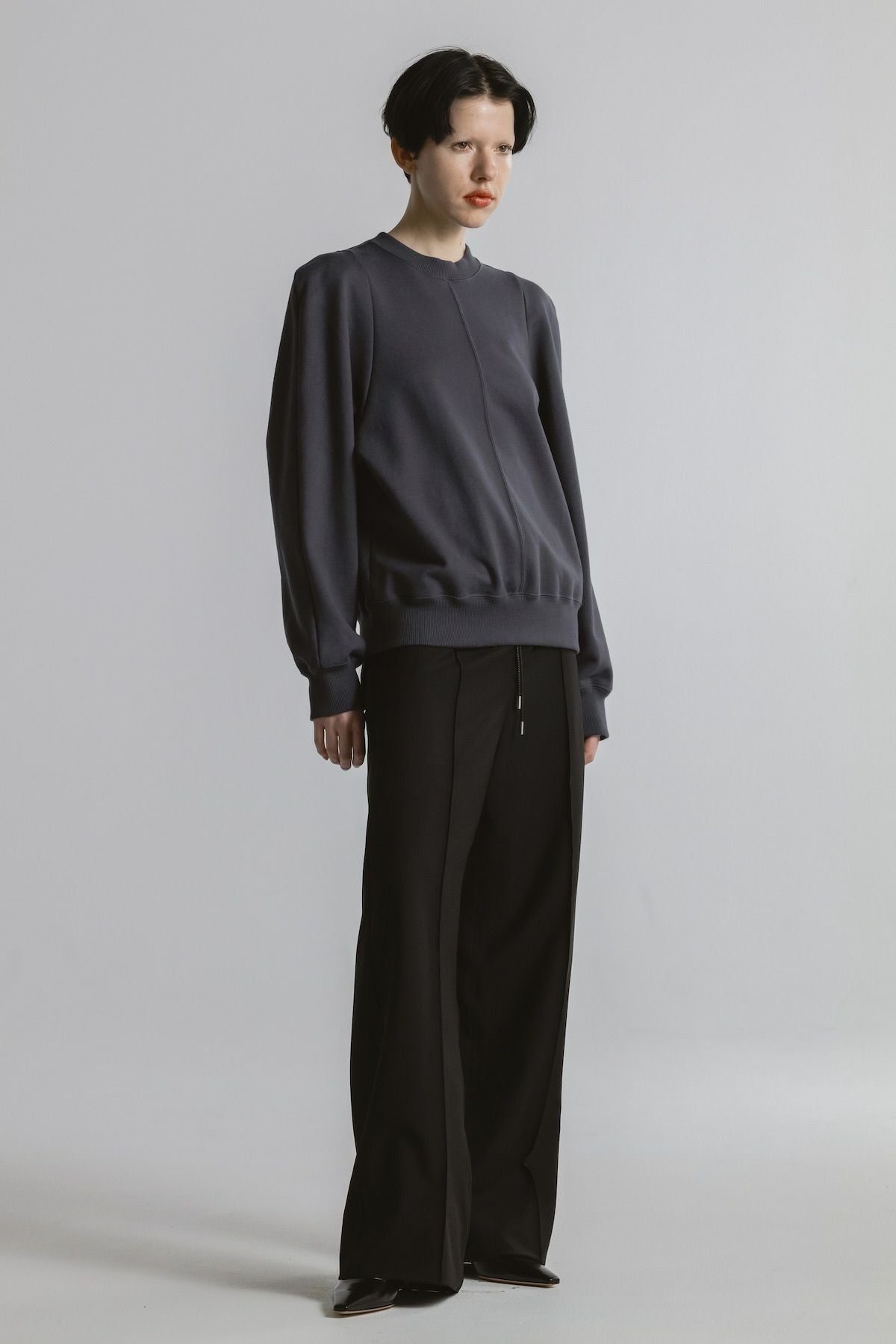 ・フロントにピンタックを施したイージーパンツ