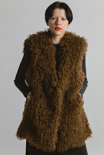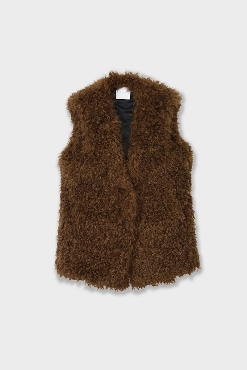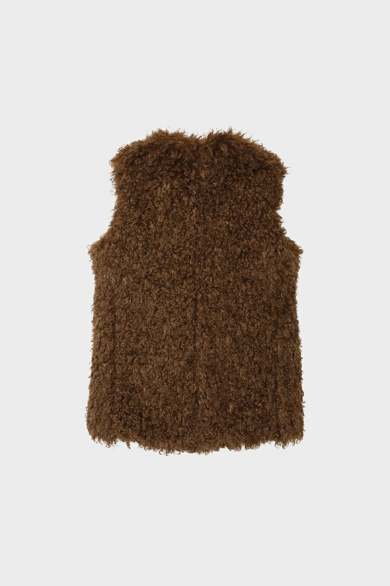 毛足を長くカールさせた立体感あるファー素材を使用したベスト。