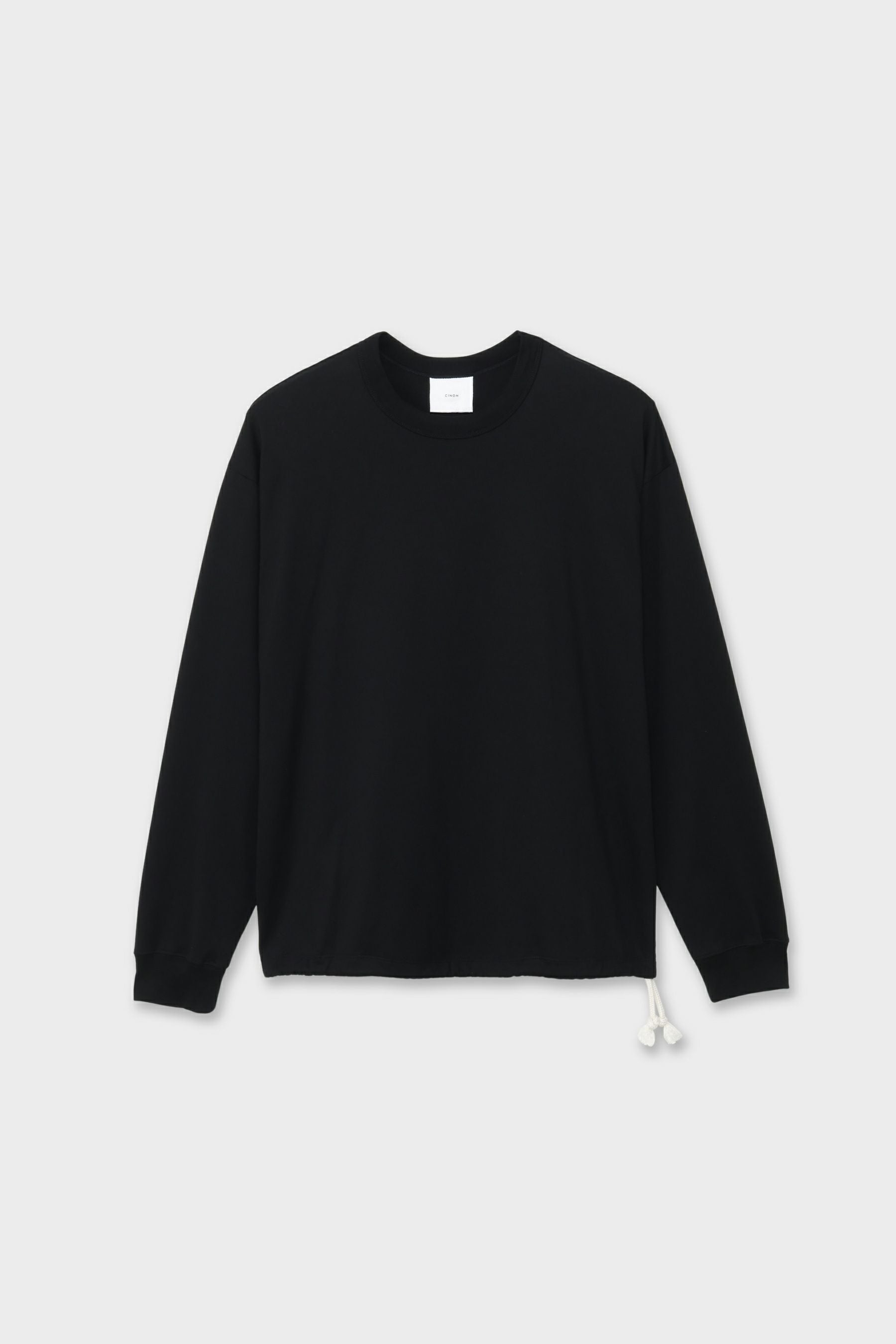 ・裾にドローストリングを配したロングスリーブTシャツ ・ゆとりのあるリラックスフィット ・ドローストリングを調整することで、丈感やシルエットに変化をつけた着こなしが可能 ・ブラウジングのようなボリューム感を出し、表情豊かなレイヤードスタイルにも対応