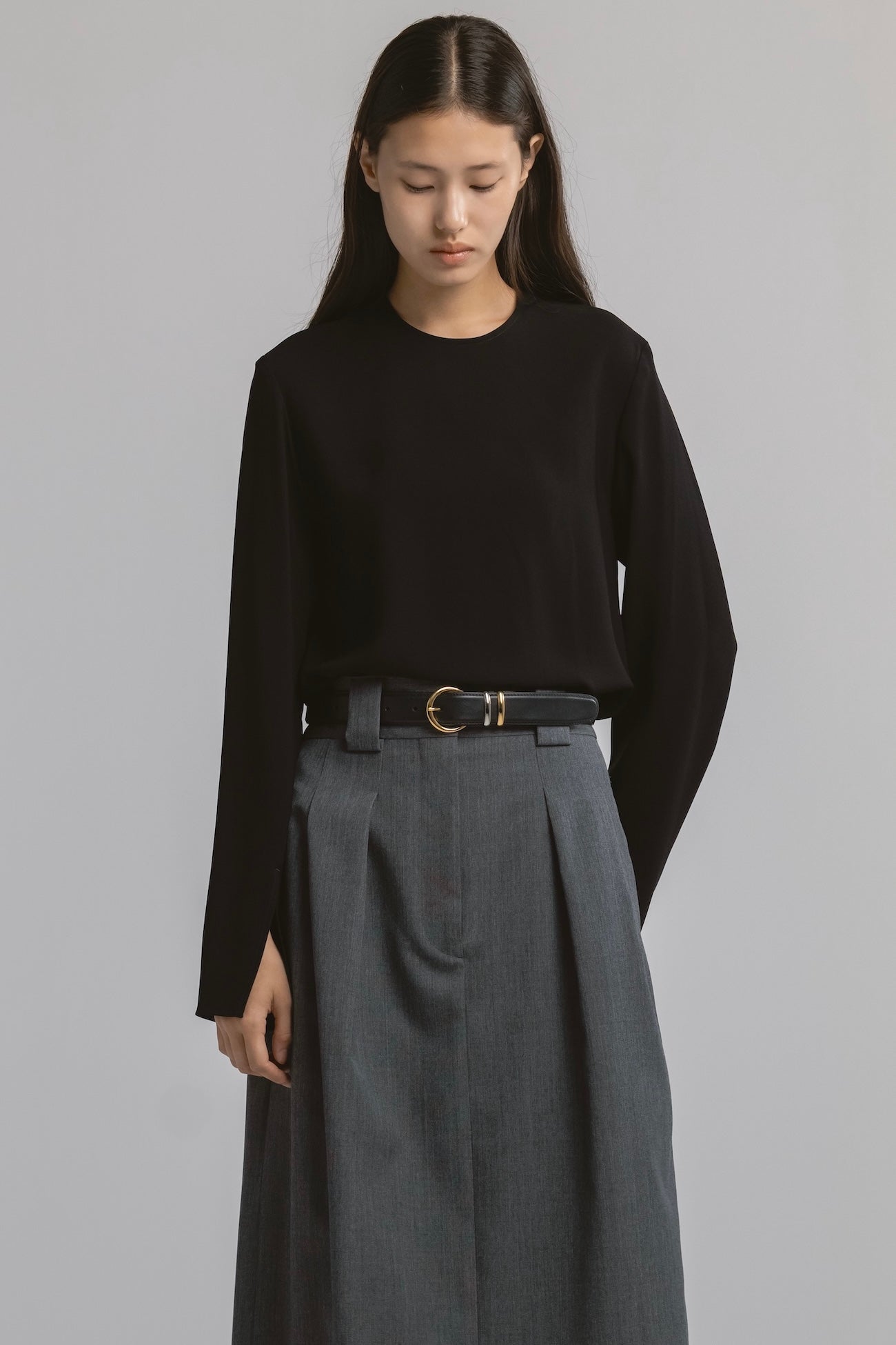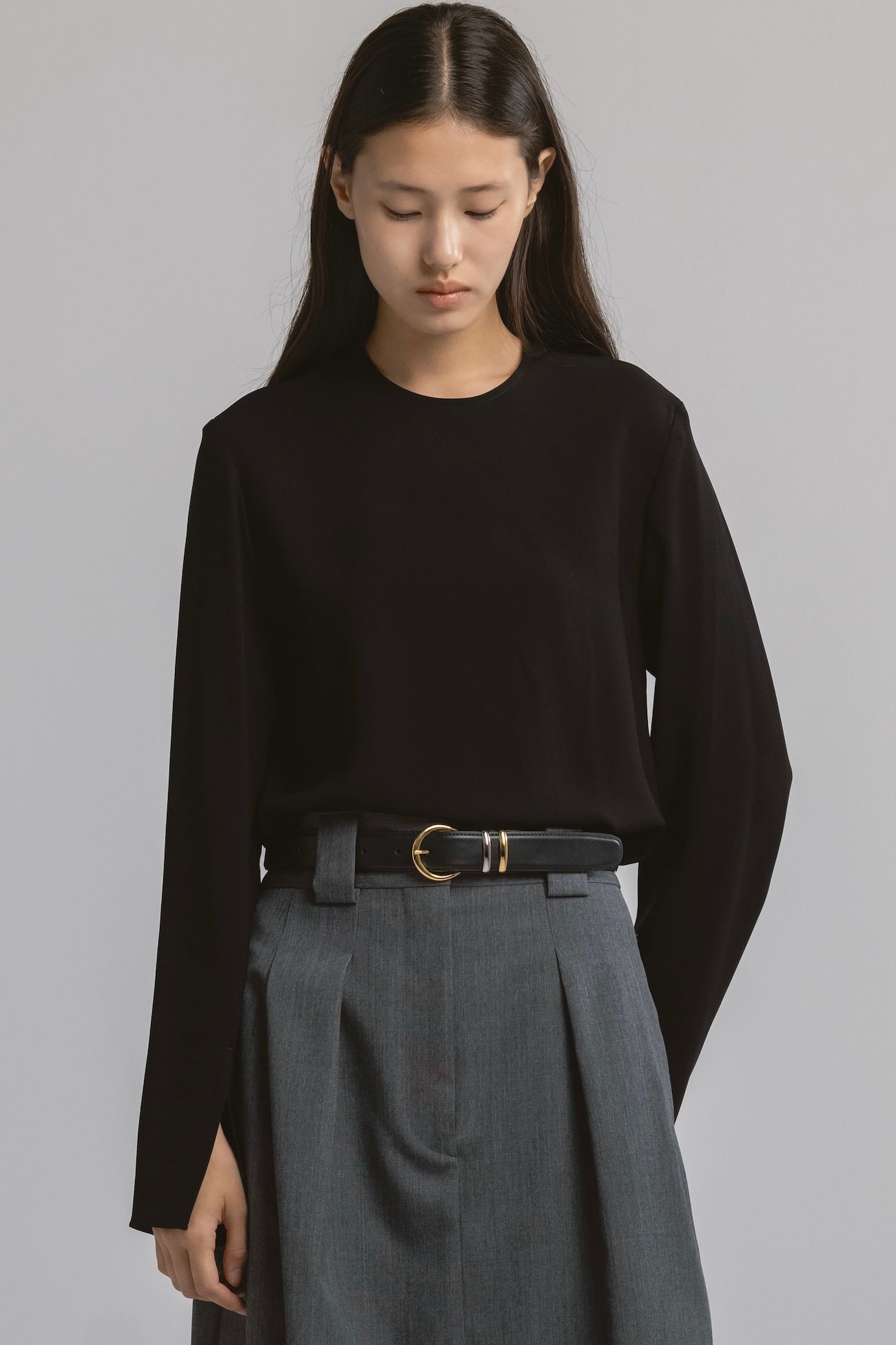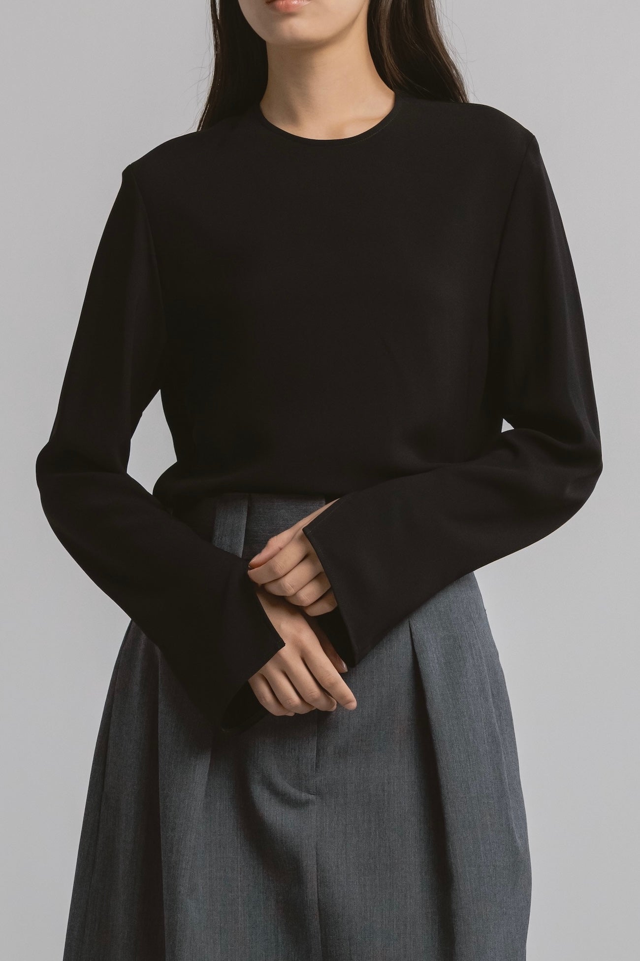 • 余計な装飾を排した、静かな存在感を放つクルーネックブラウス。
