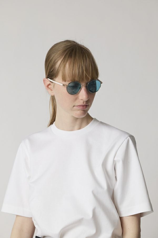 今回のコラボレーションでは、ミニマルでシックなスタイルをイメージした、クリーンな印象のブラック(リム)×ホワイト(テンプル)の配色でオーダー。