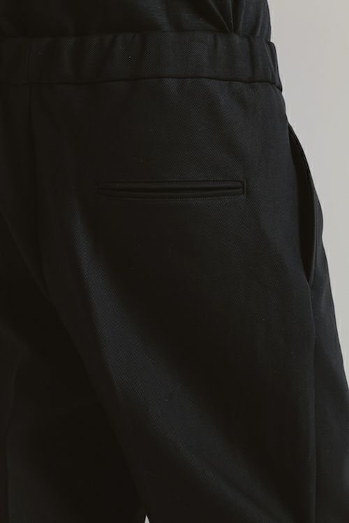・コットン原料を使用し、綾織りで織り上げ後染めで仕上げた素材 ・イタリアの高密度織機による重厚感とふくらみのある風合い ・高密度ならではの完成度の高い表情とタッチ感が特徴