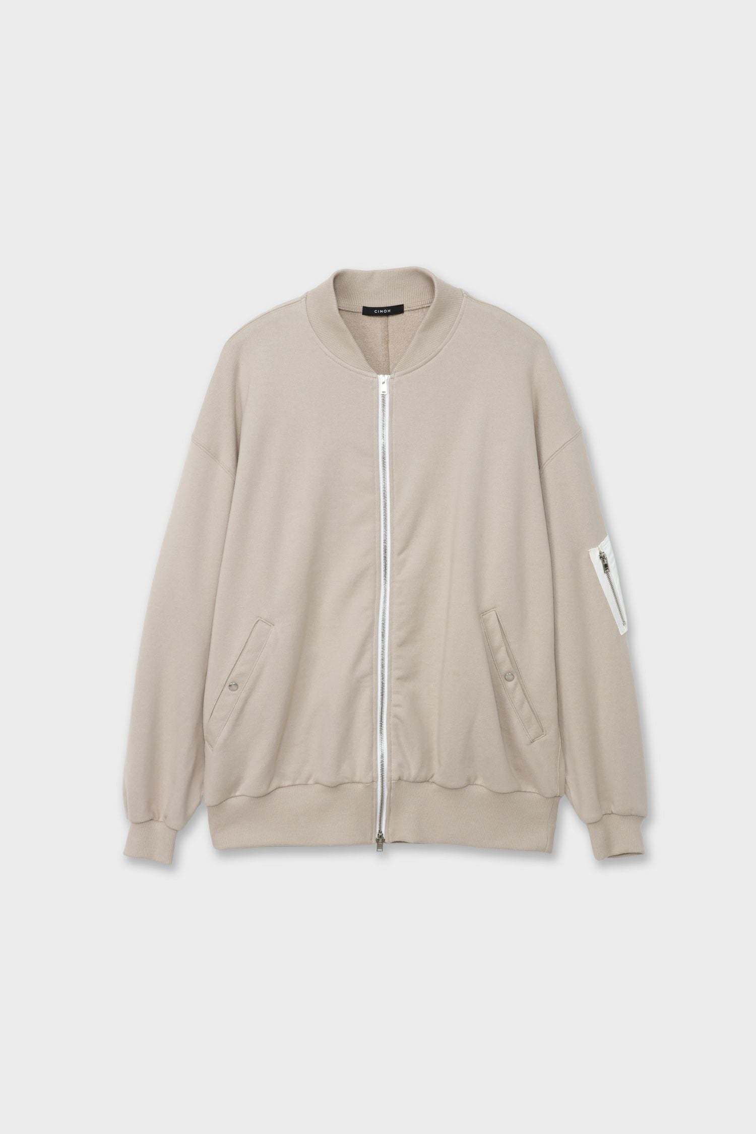 ・ヘビーウェイトの裏毛を使用したミニマルなボンバージャケット ・身頃に程よい厚みとハリを持たせ、立体的なシルエットに ・左袖に配したナイロン素材のシガーポケットがアクセント ・カジュアルと上質感を両立させたバランスの取れたデザイン