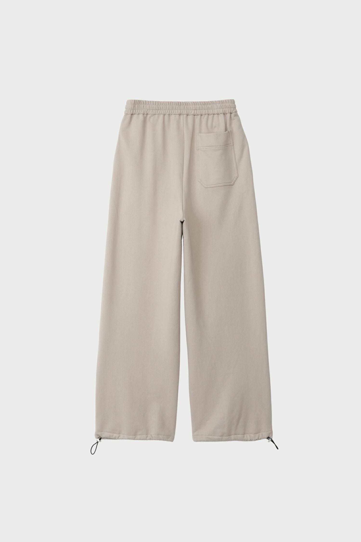 ・ヘビーウェイトのスウェット素材を使用したラウンジパンツ ・ウエストと裾にドローコードを配置し、フィット感とシルエットの調整が可能 ・ギャザー入りのウエストとワンタック仕様により、立体的なフォルムを構築 ・日常に取り入れやすい、程よいラフさと洗練を併せ持つデザイン