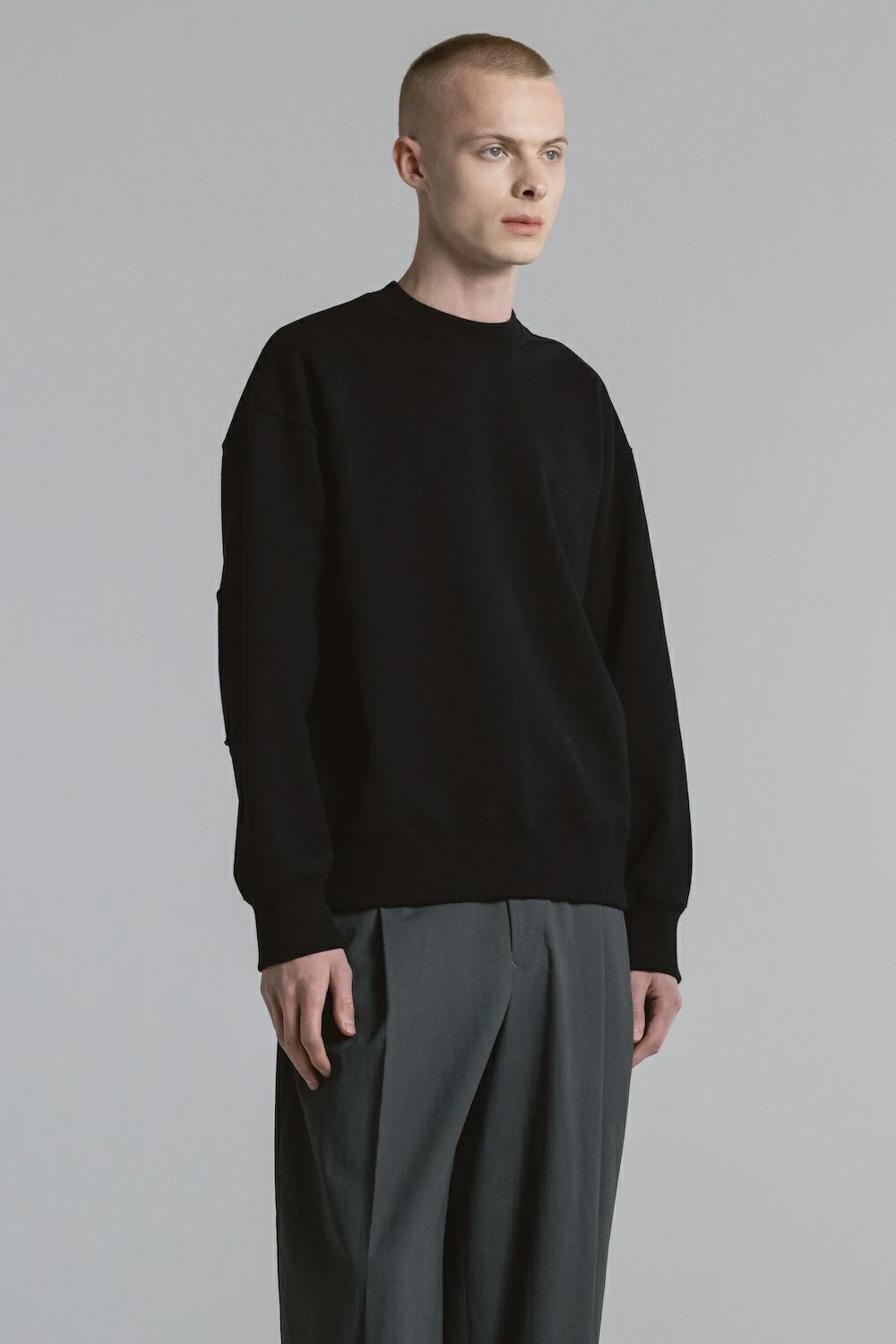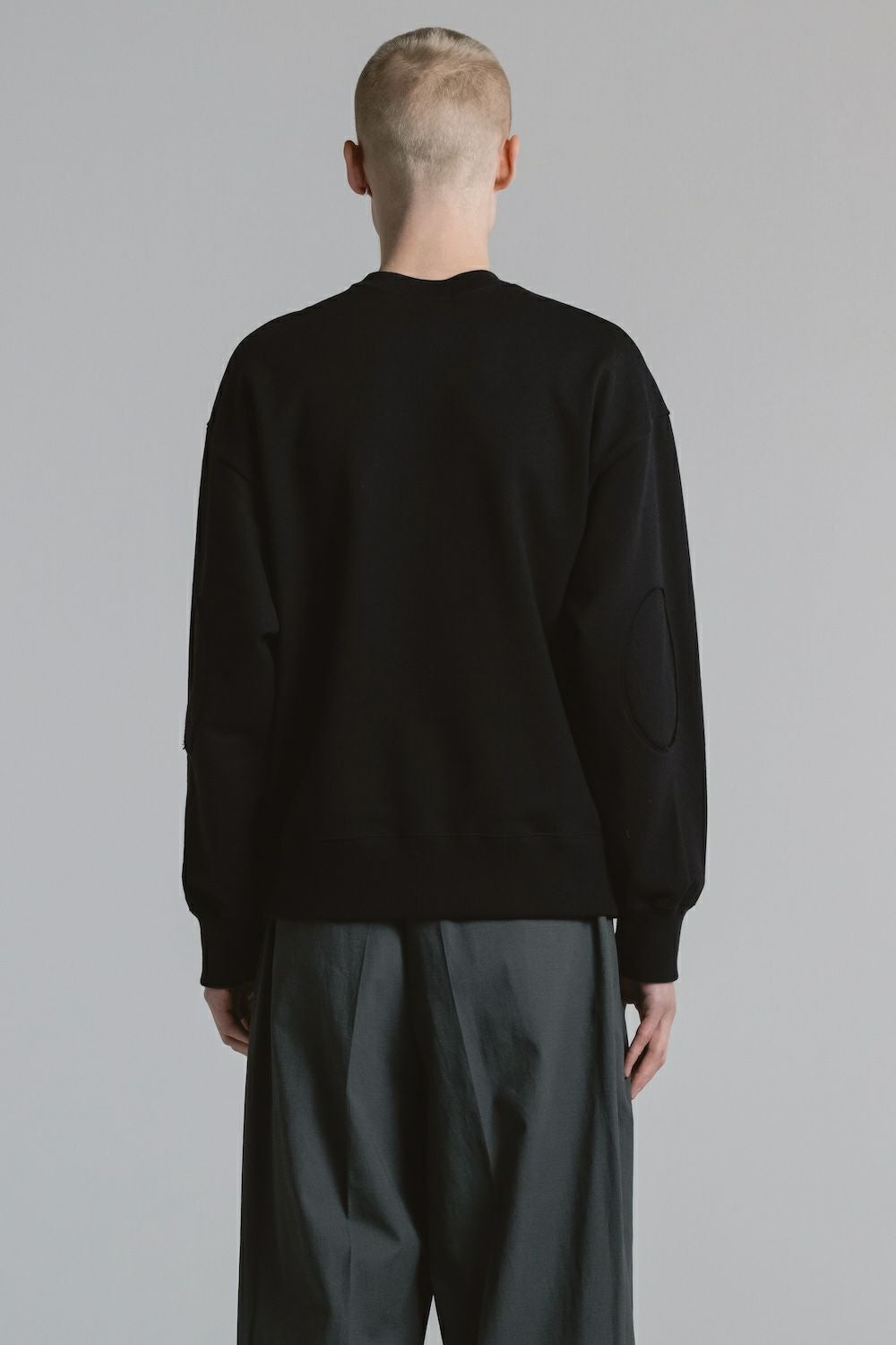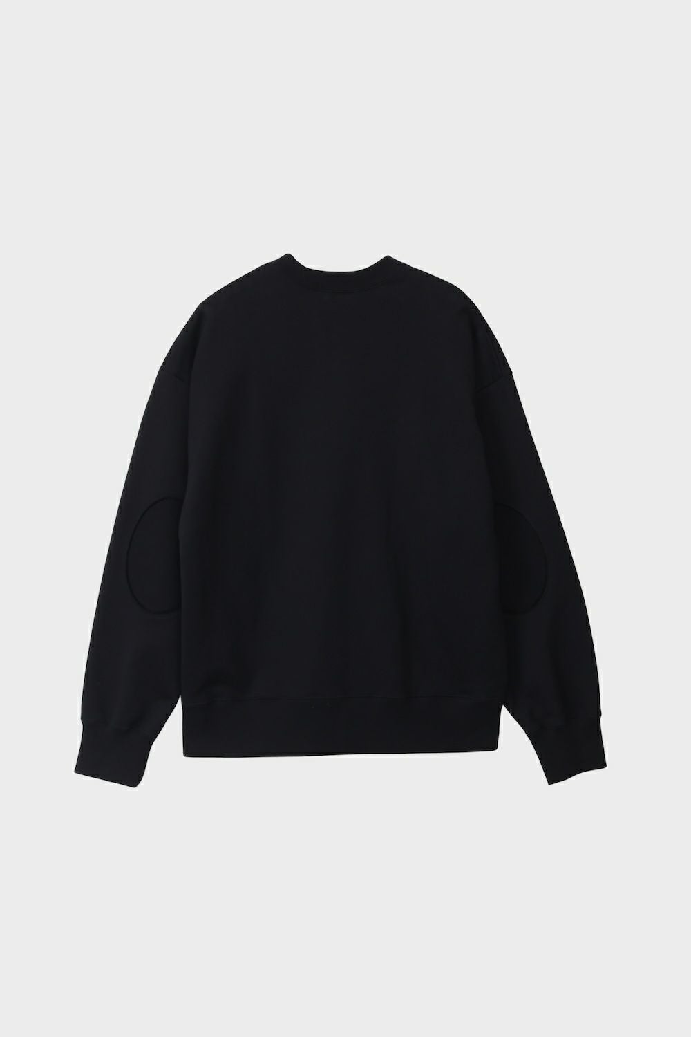 ・ややリラックス感のあるシルエットのクルーネックスウェット ・エルボーパッチがさりげないデザインポイント ・ドロップショルダーによって抜け感のあるスタイル ・一枚着でも存在感があり、ミニマルなコーディネートに映える