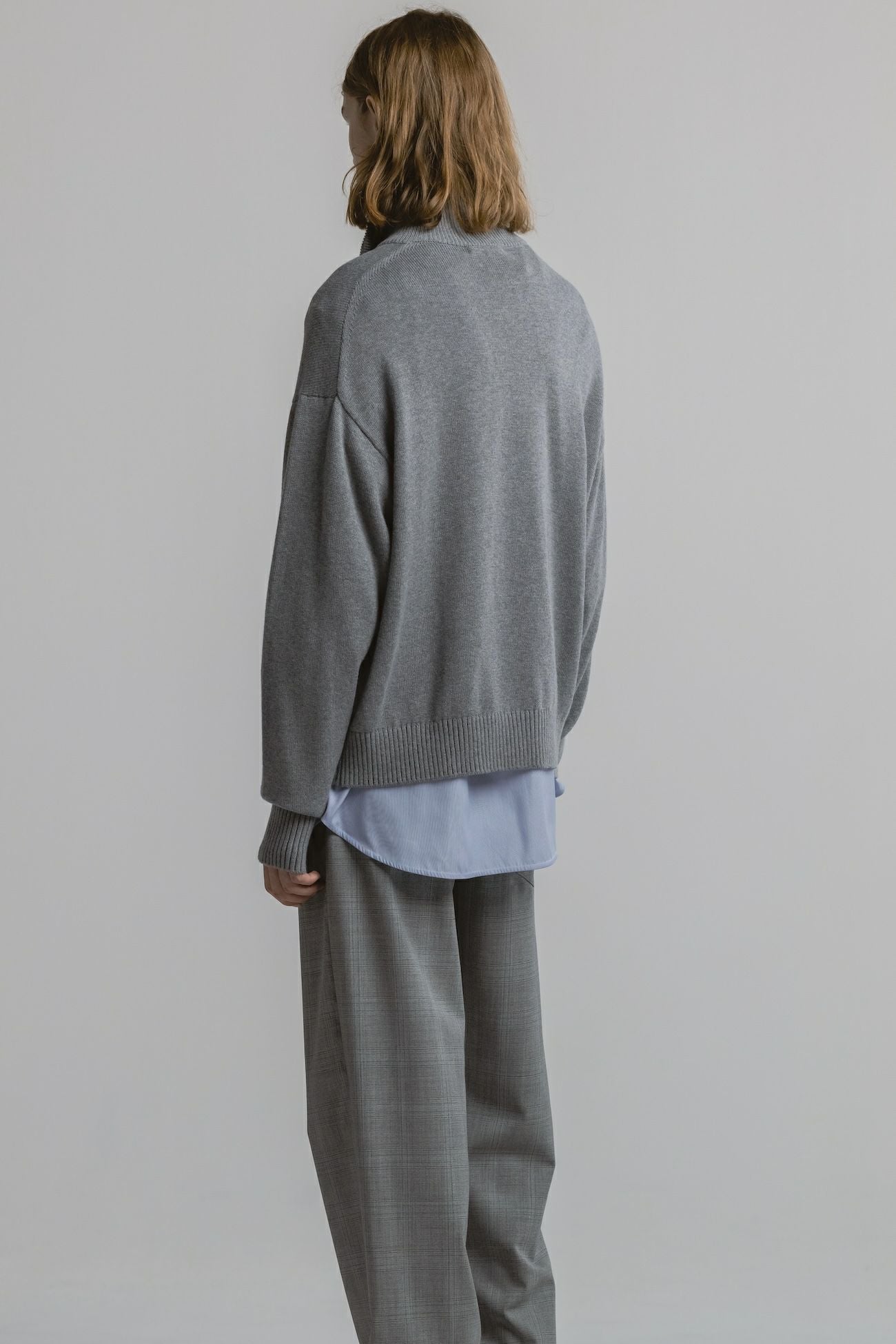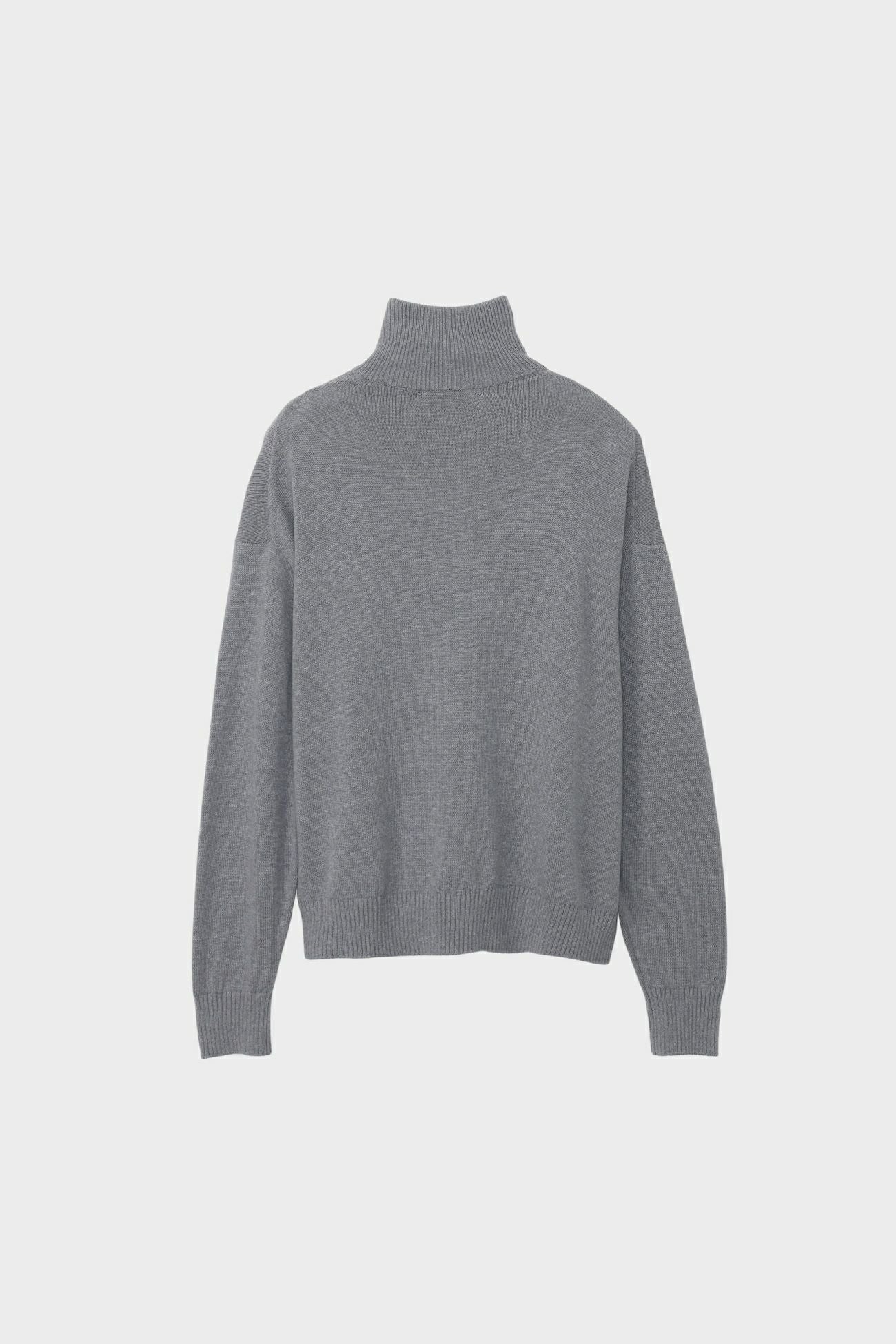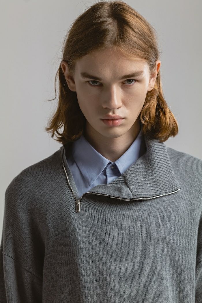 ・フロントのジップを右寄せに配したアシンメトリーデザインのハーフジッププルオーバー ・襟元に自然なニュアンスが生まれる構造で、ミニマルな中に独自のずれを演出 ・コットンカシミヤ素材の柔らかな風合いが引き立つ、洗練された一枚