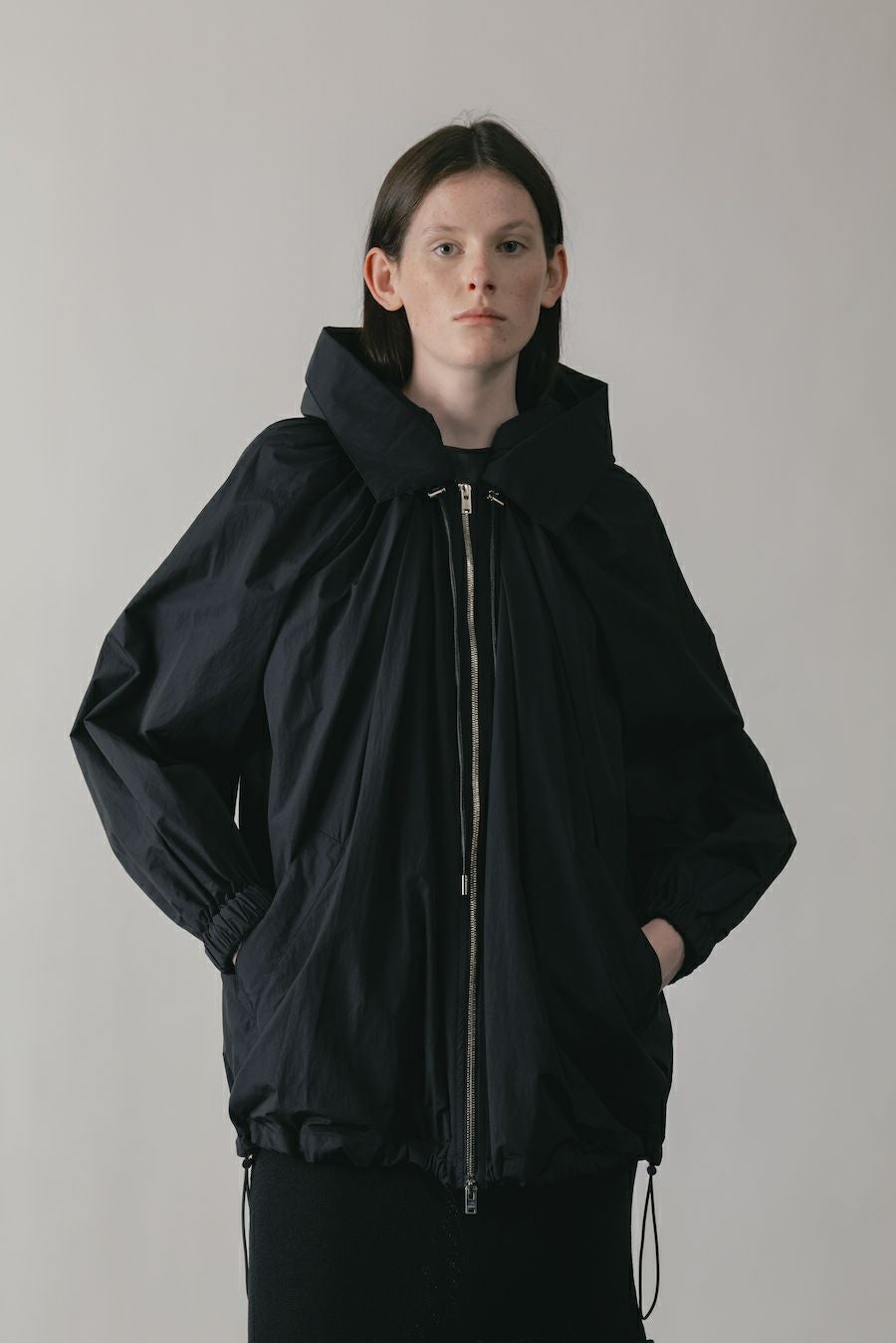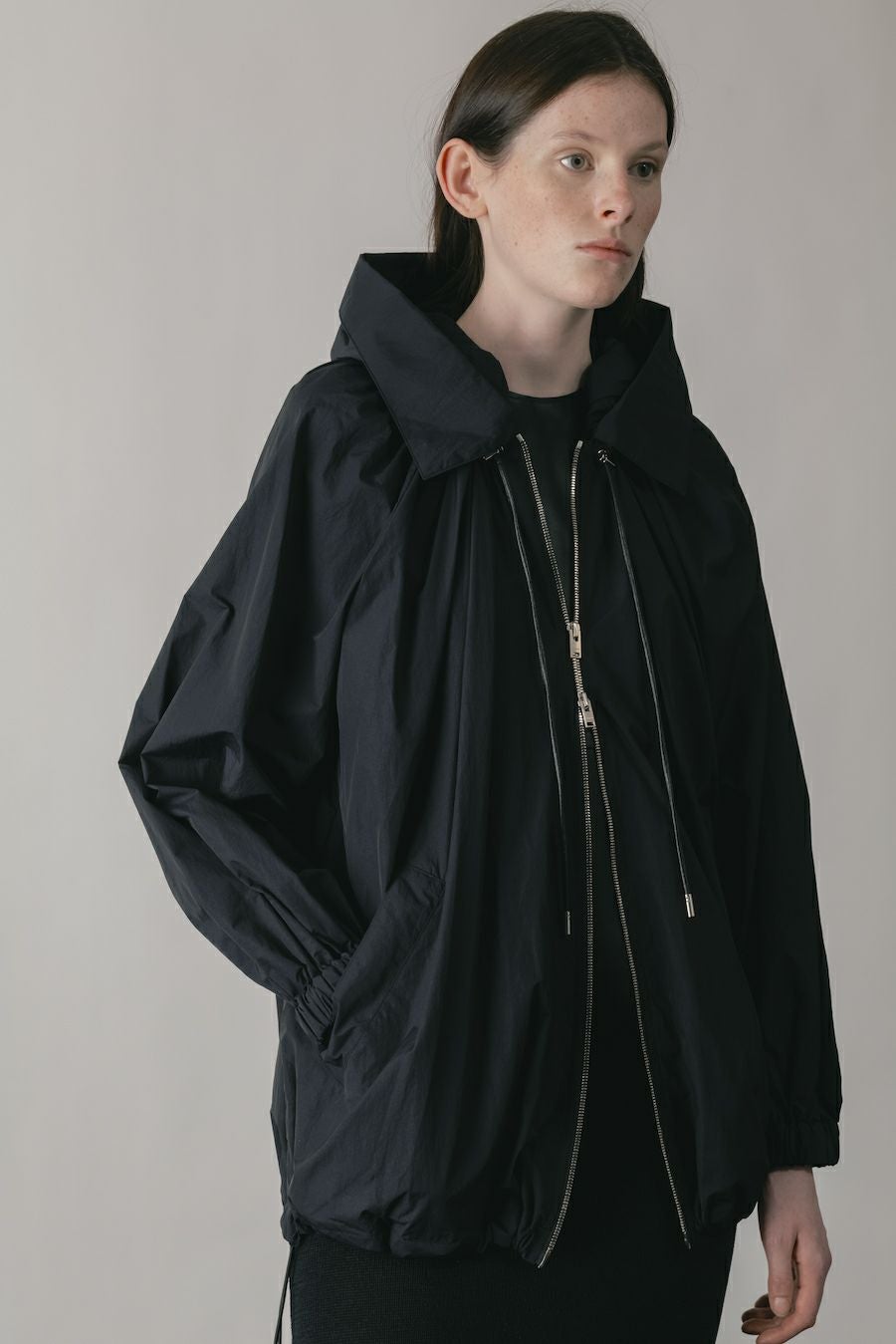 ボリュームシルエットのフーディブルゾン。