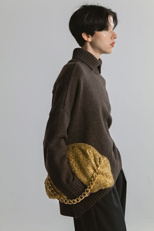 ・ラメの輝きと素材のボリュームがアクセサリー感覚で使えるデザイン