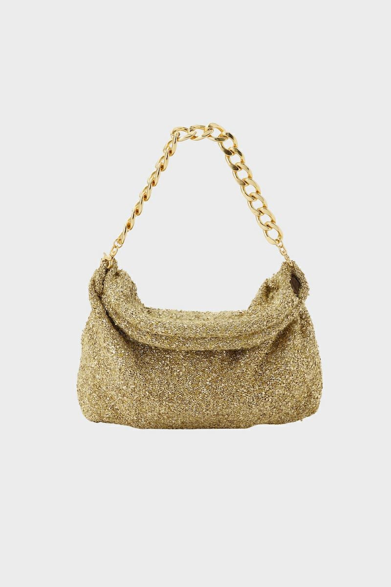 クラッチとしても肩掛けバッグとしても使える、汎用性の高い2WAY仕様のグリッターバッグ。
