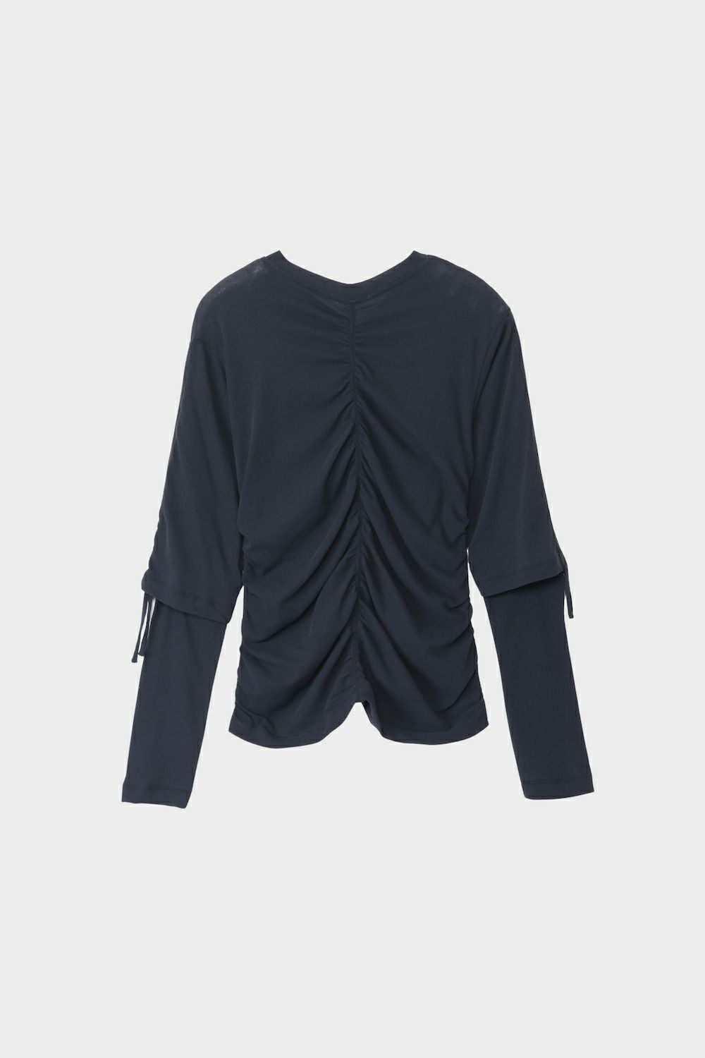 ・肘部分にスラッシュを施し、袖のギャザー分量を調整可能な仕様