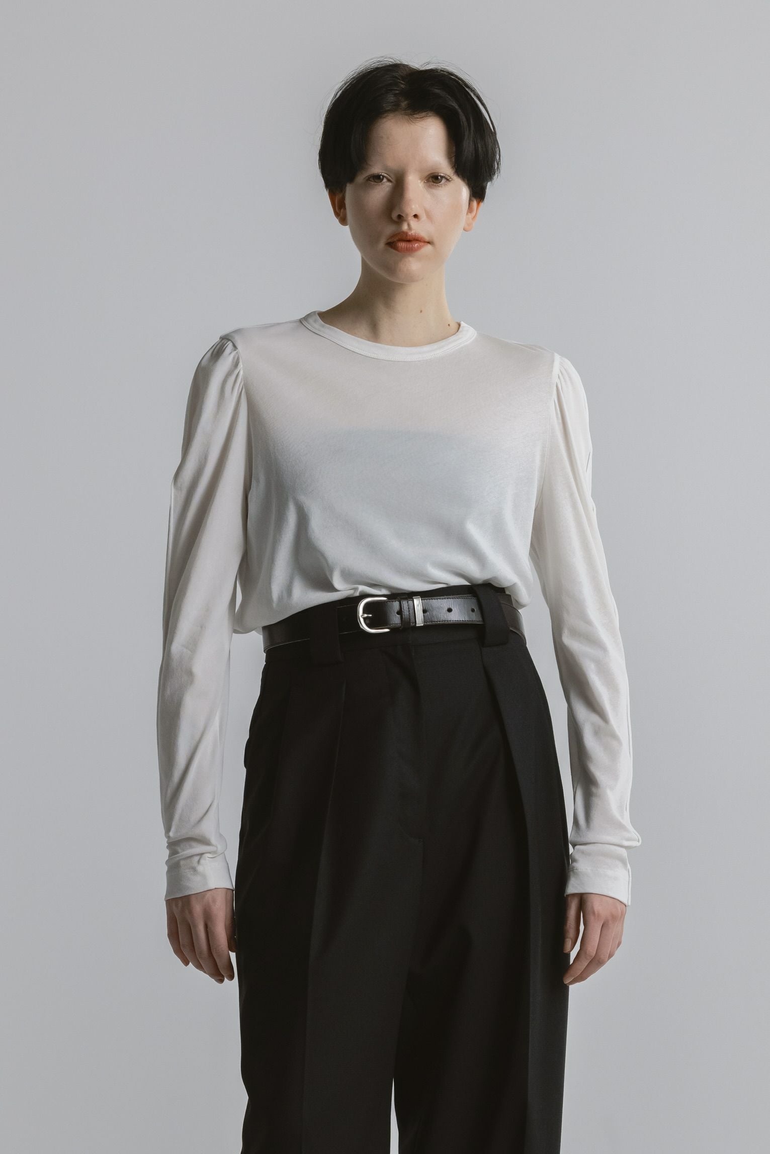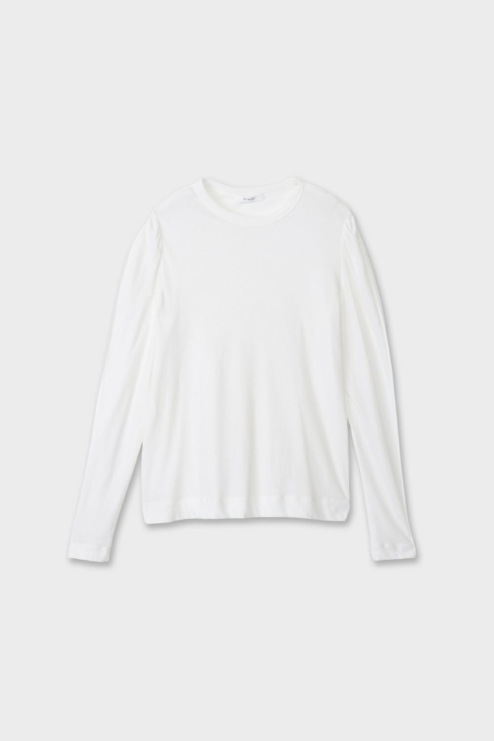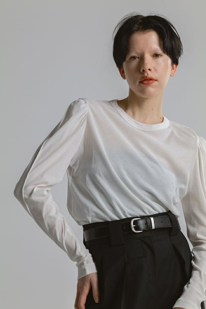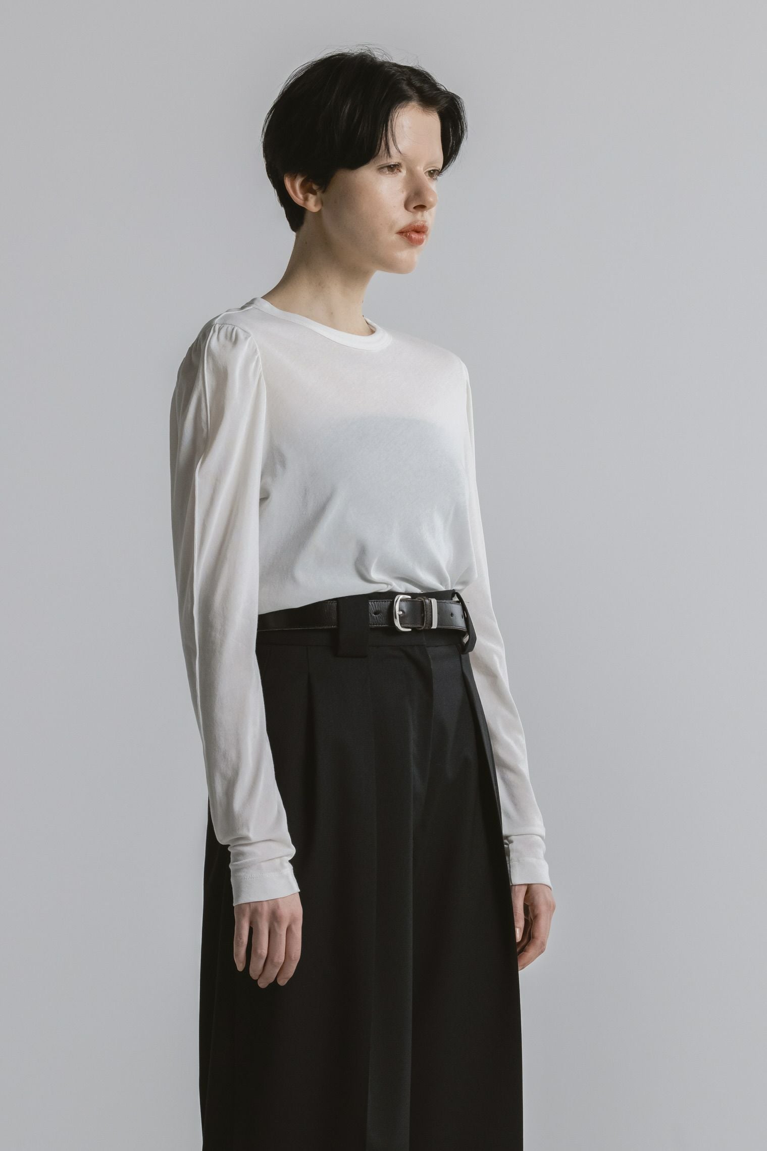 ・袖山にタックを入れたパフスリーブディテールのロングTシャツ