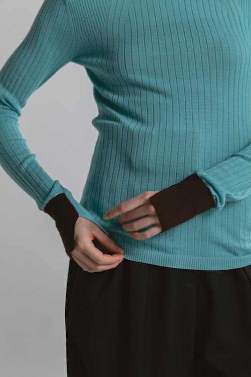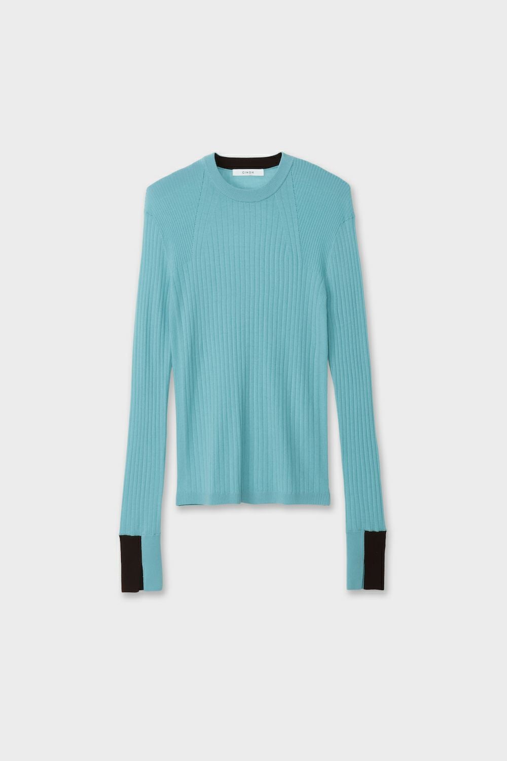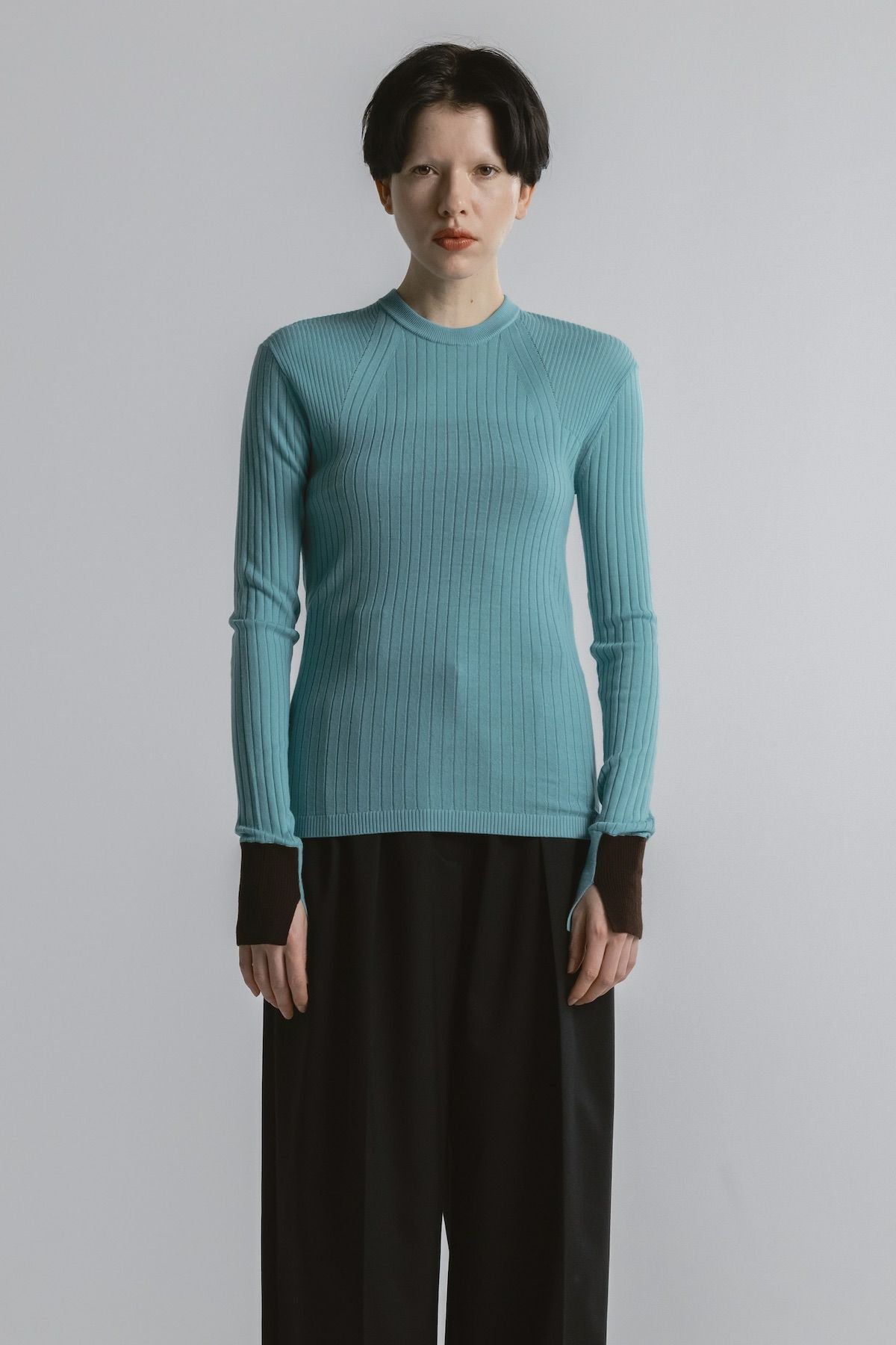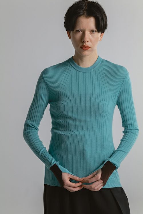 3. クルーネックタイトニット[TURQUOISE/BROWN]