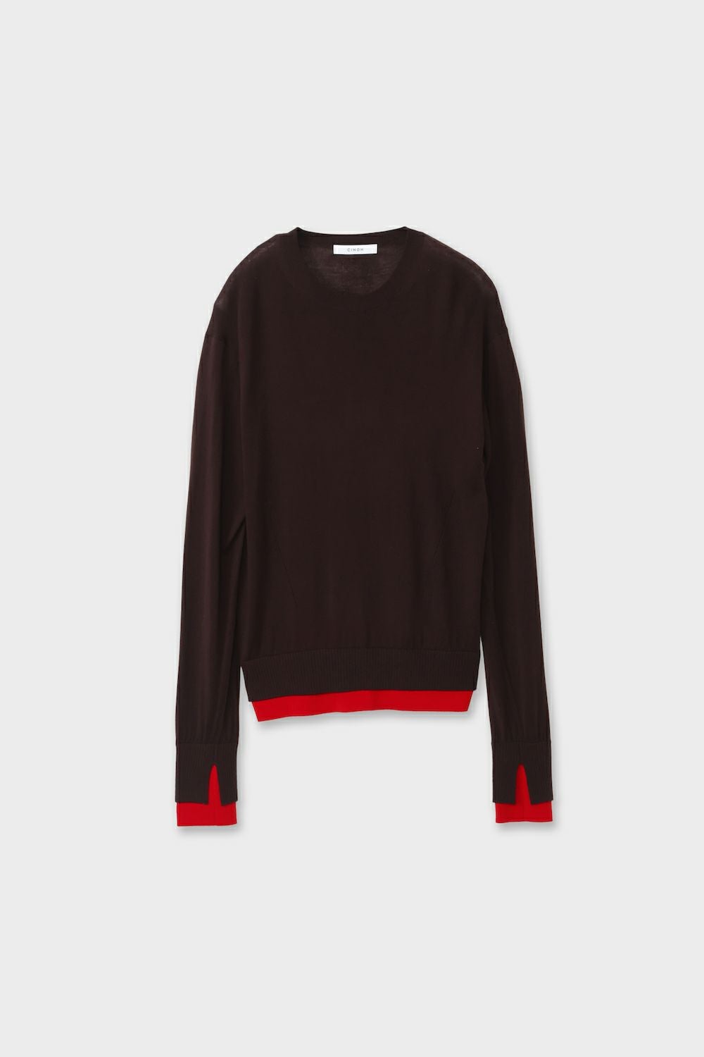 3. バイカラートリムニット[BROWN/RED]