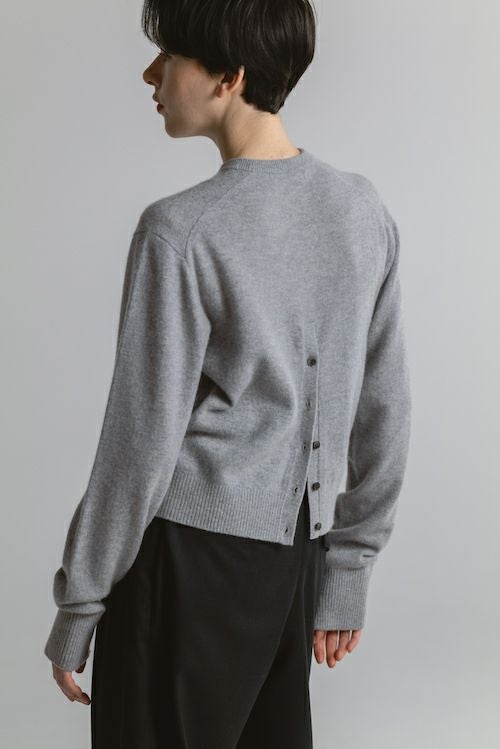 インナーとレイヤードして着たかったので38サイズを選びました。シンプルなプルオーバー型ながら、後ろ身頃に施されたボタンディテールが華やかさを添え、バックスタイルにさりげないアクセントを加えてくれます。