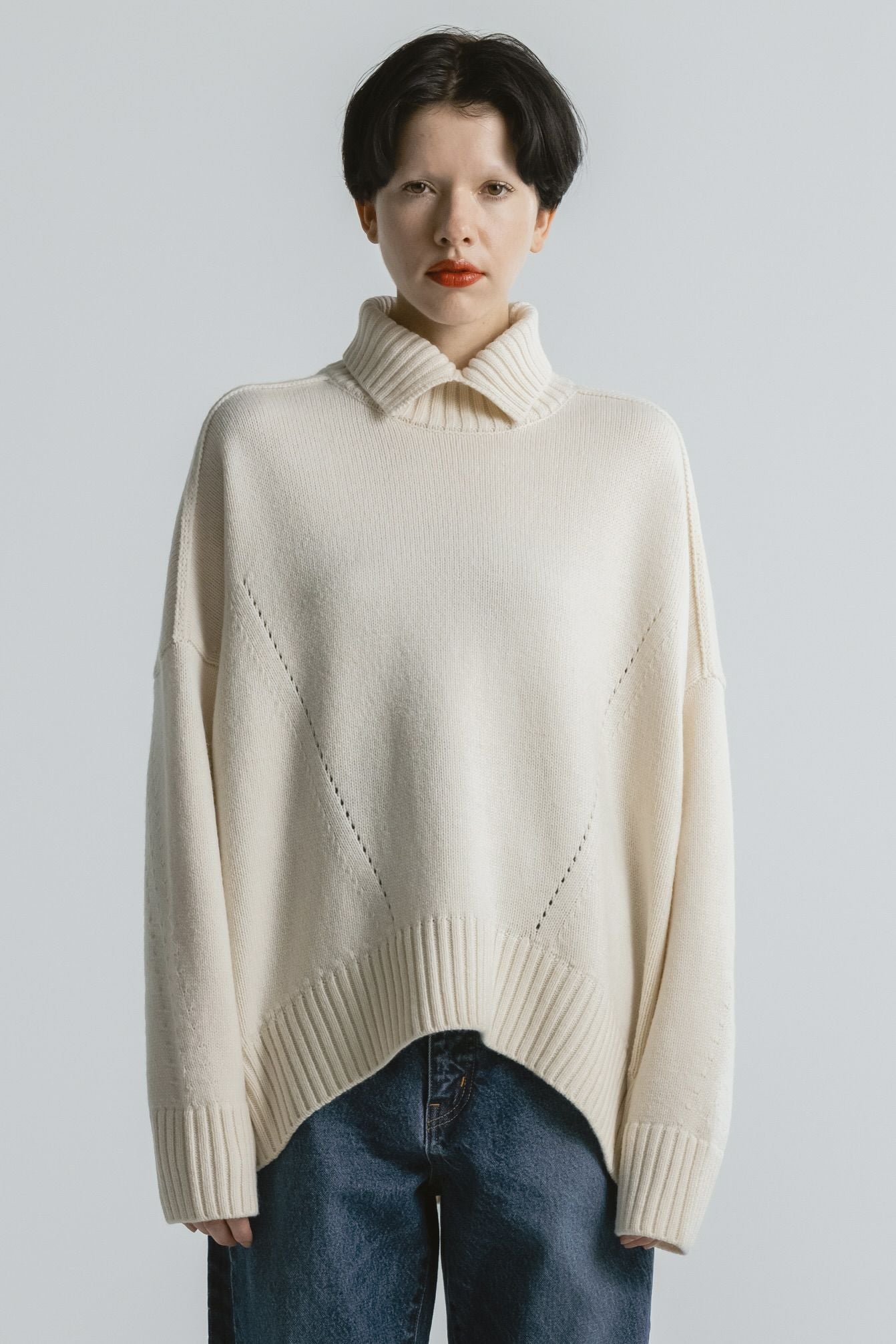 ・ゆったりとしたオーバーサイズのハイネックプルオーバー