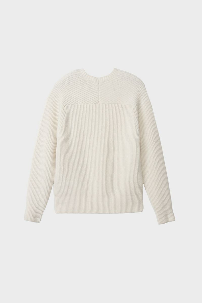 ・身頃と袖に畦編みを施し、立体的で暖かみのある表情に