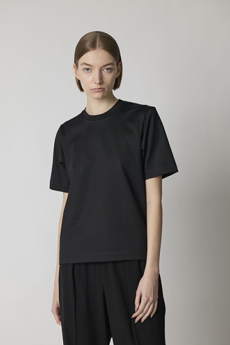 通常のヘビーウェイト天竺にはない上品なツヤ感があり、カジュアルながらも品よく着られるのが魅力。