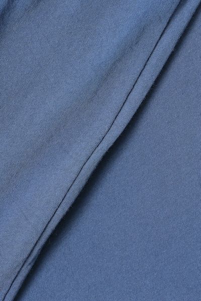 定番で使用している強撚コットン天竺です。微光沢とシャリ感のある素材は繊細でドレープ性に富み上品な風合いです。