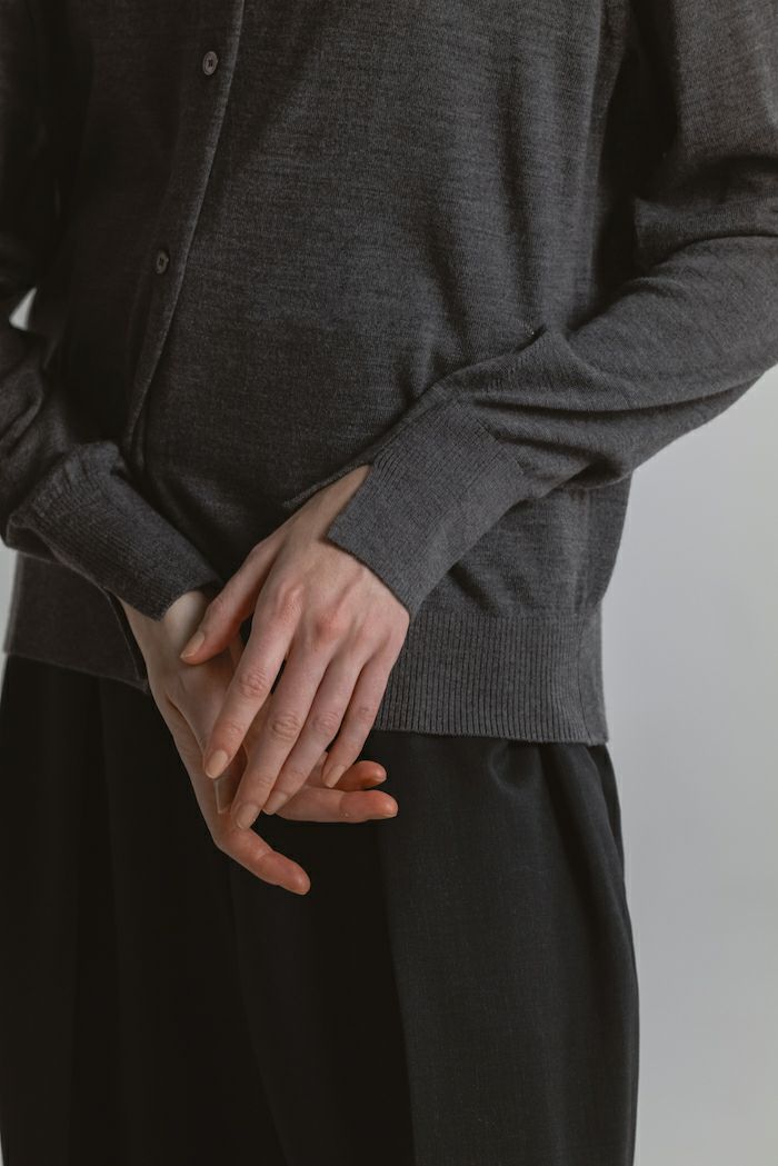 上質なメリノウールを使用した、ミニマルで洗練された印象のニットカーディガン