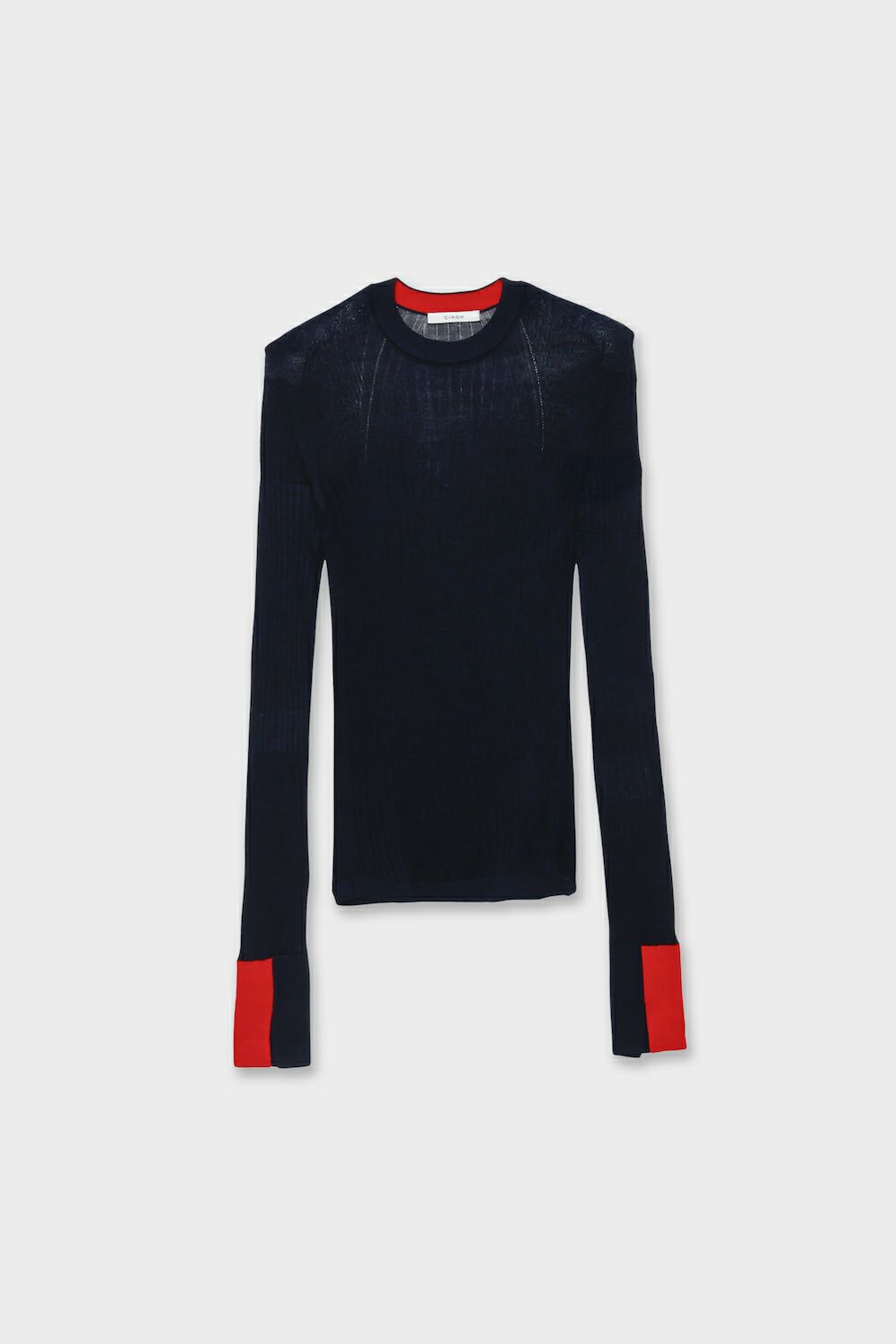 NEW シルククルーネックタイトニット[NAVY/RED]
