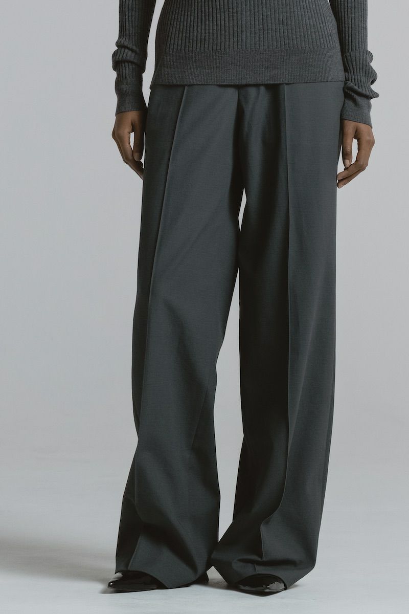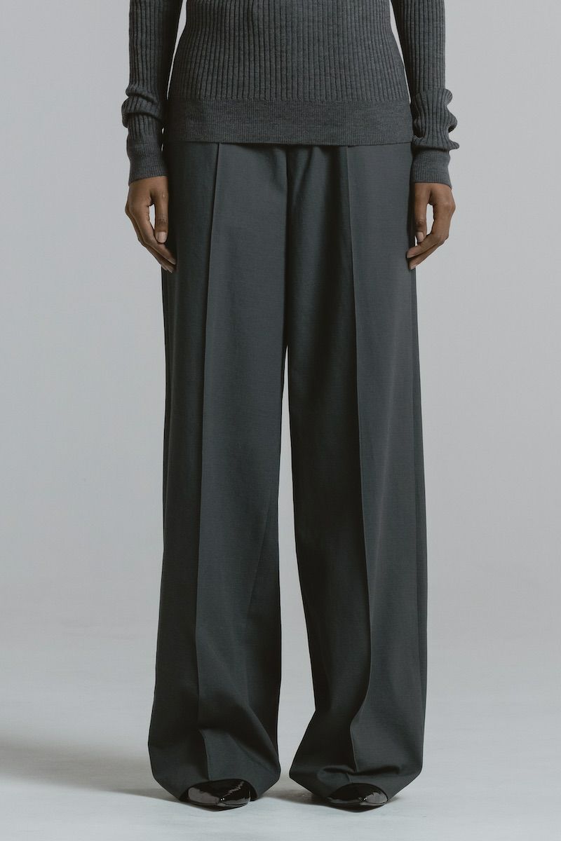 ・裾までまっすぐに落ちるシェイプが脚を美しく見せ、スタイリングを引き締める