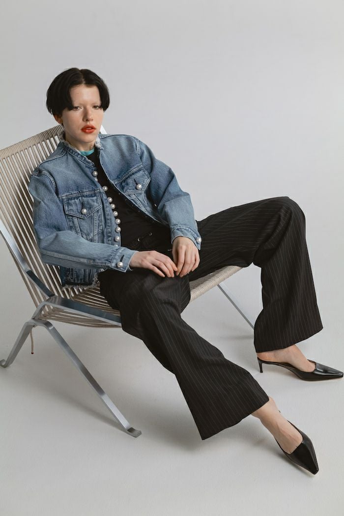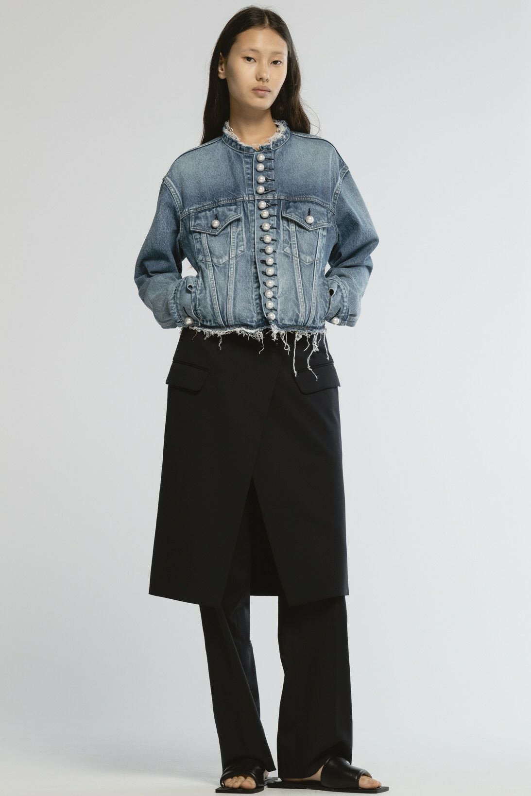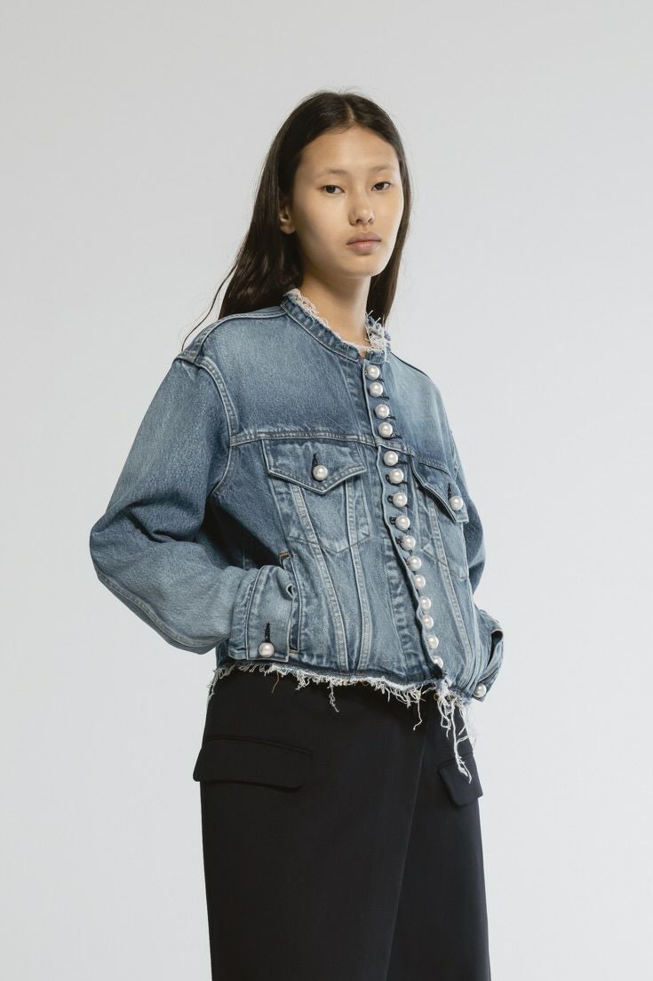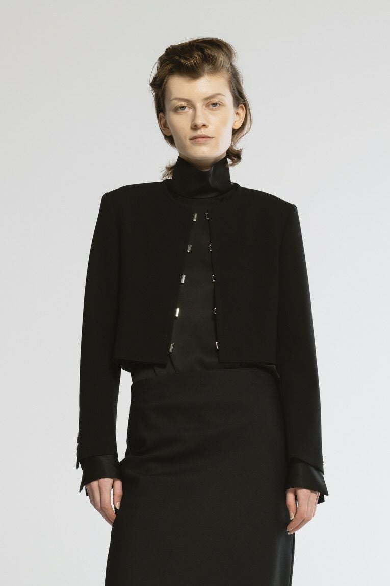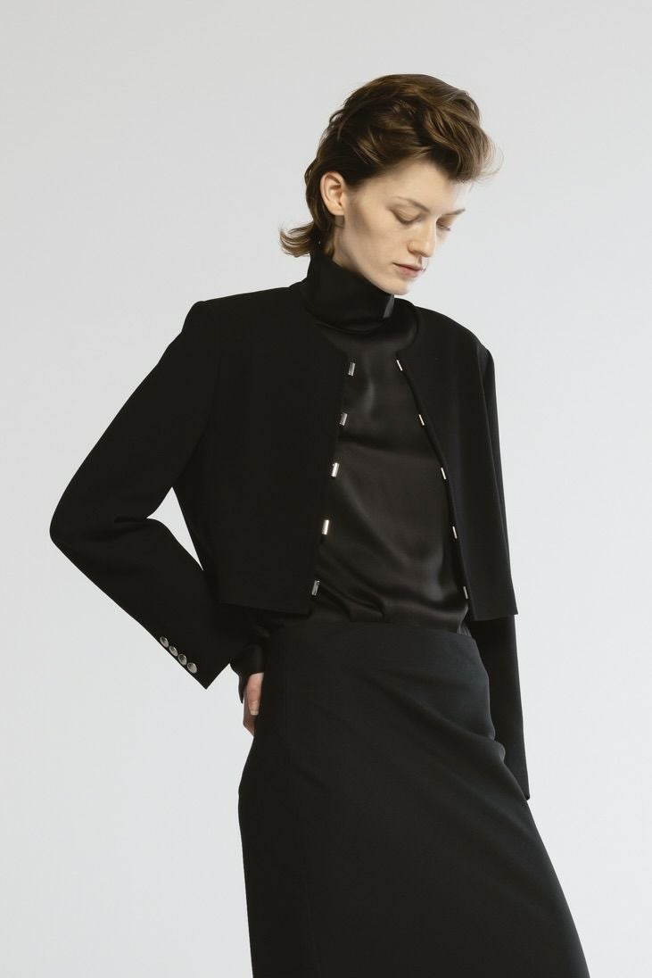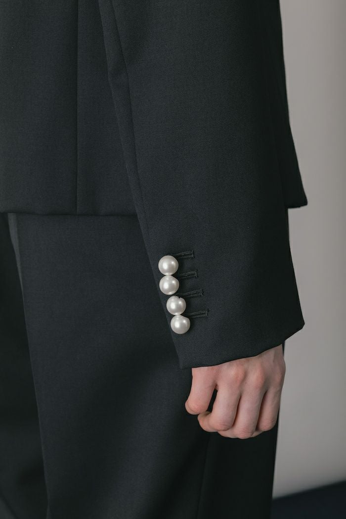 OBLIQUE W JACKET[ブラック×パールボタン]
