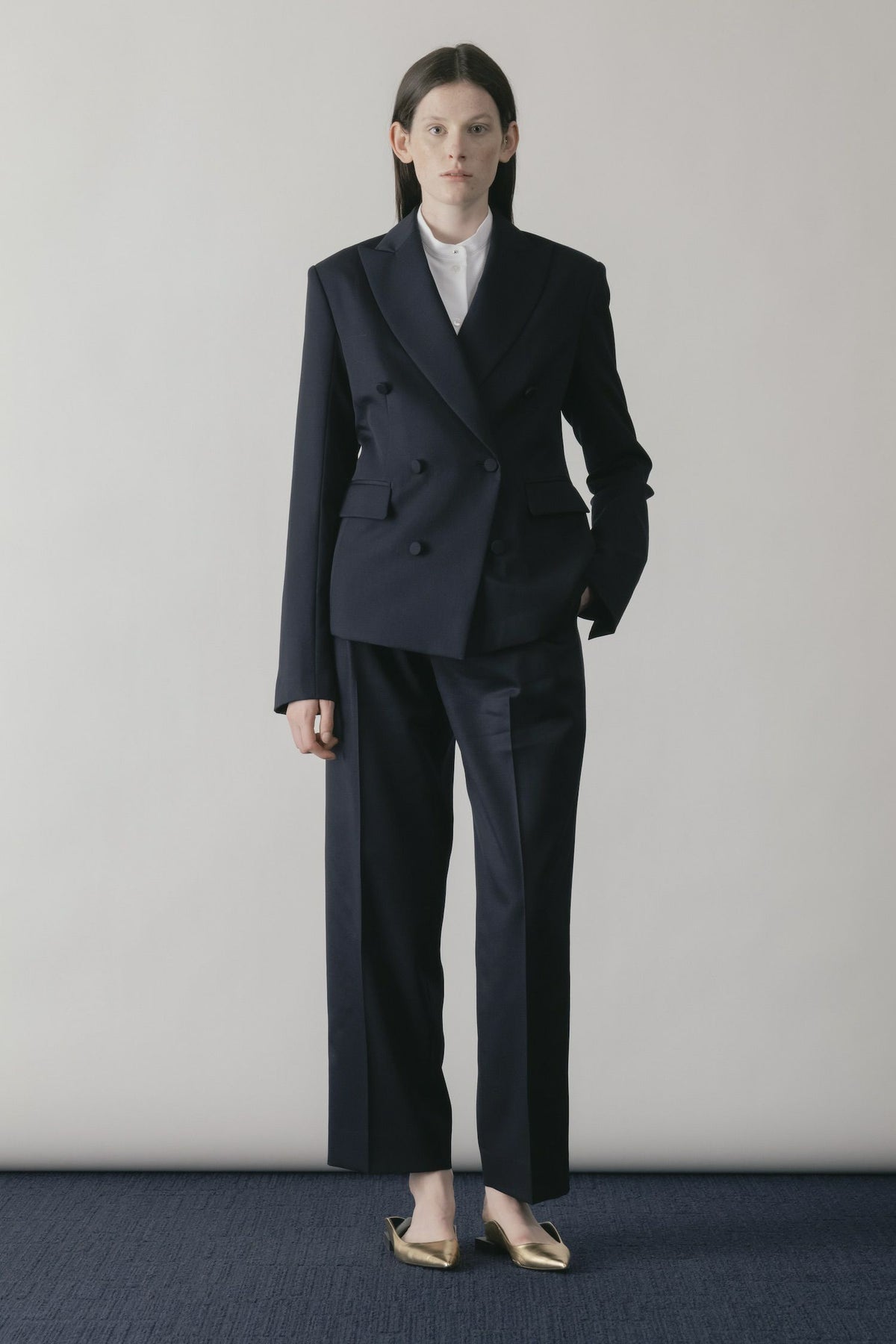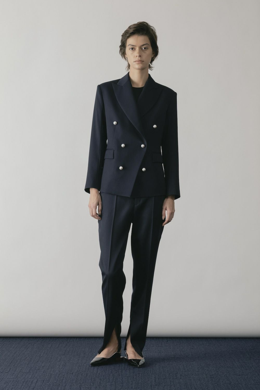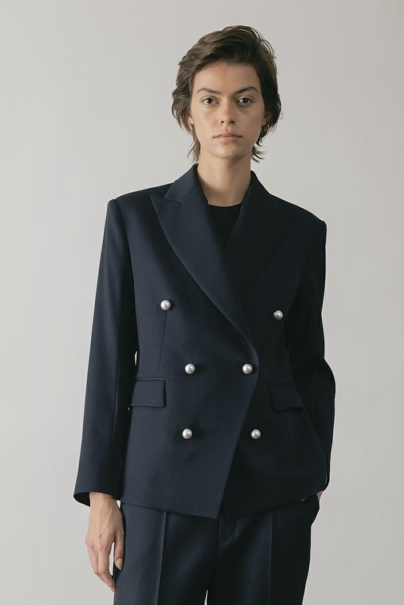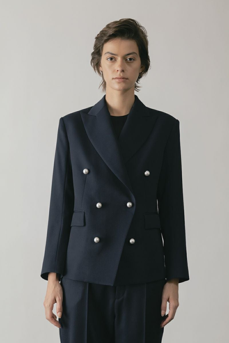 OBLIQUE W JACKET[ネイビー×パールボタン]