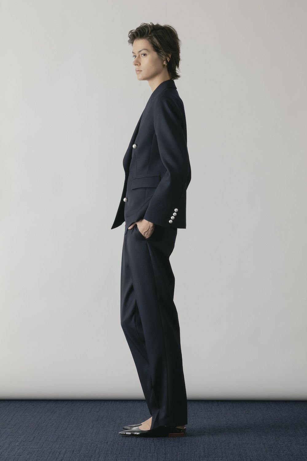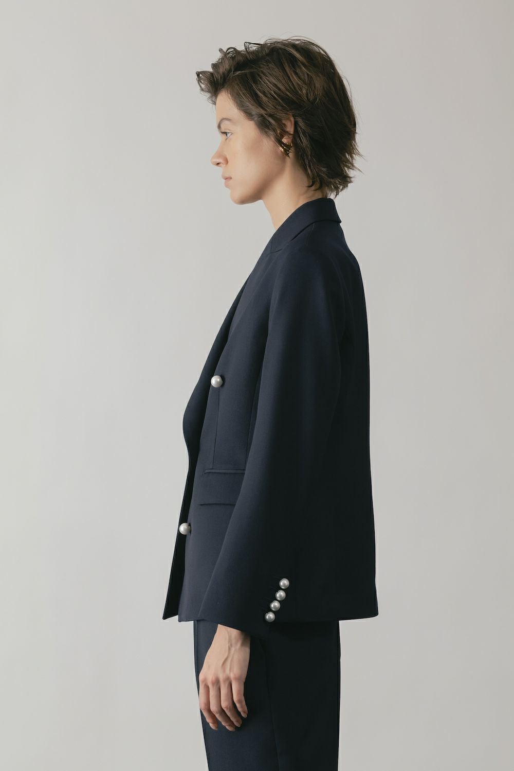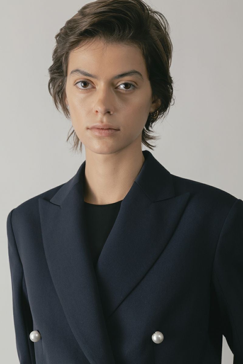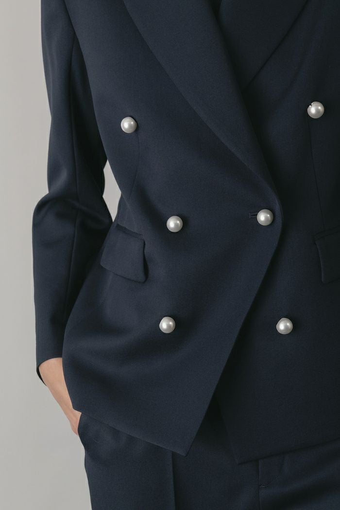 - OBLIQUE W JACKET[ネイビー×パールボタン]
