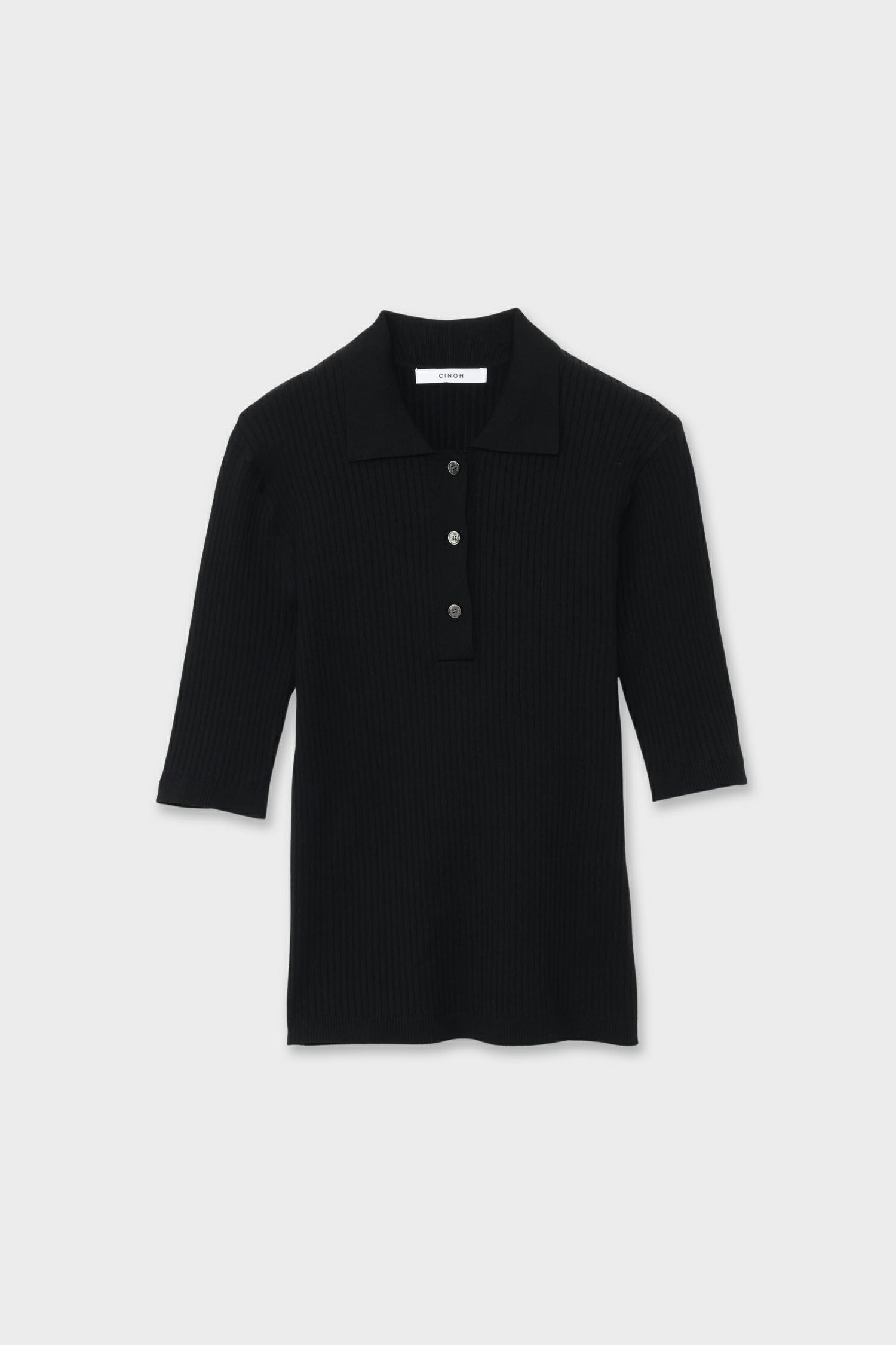 3. SILK RIB KNIT SHORT-SLEEVE POLO[BLACK]