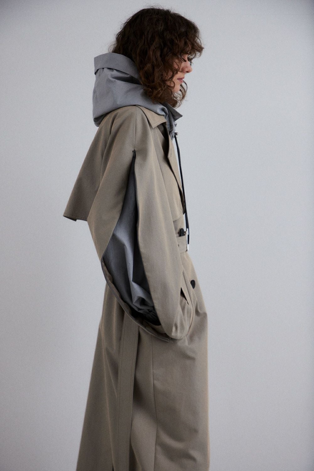 ・円相をモチーフとした構築的デザイン ・袖口にファスナーを施し、スリットによる可動性と表情をプラス ・円形のパターンがトラディショナルなフォルムに柔らかなニュアンスを与える