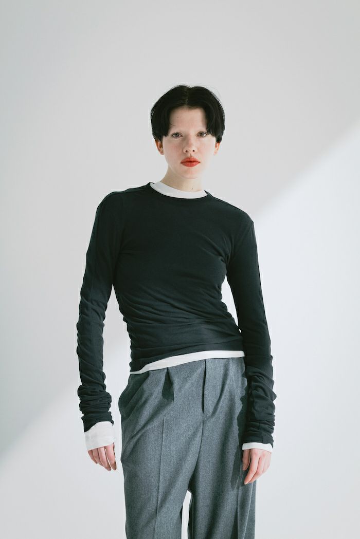 インナーとしても使いやすく、ジャケットやニットの下に重ねてももたつかないのが魅力。シーズンをまたいで活躍する万能アイテムです。