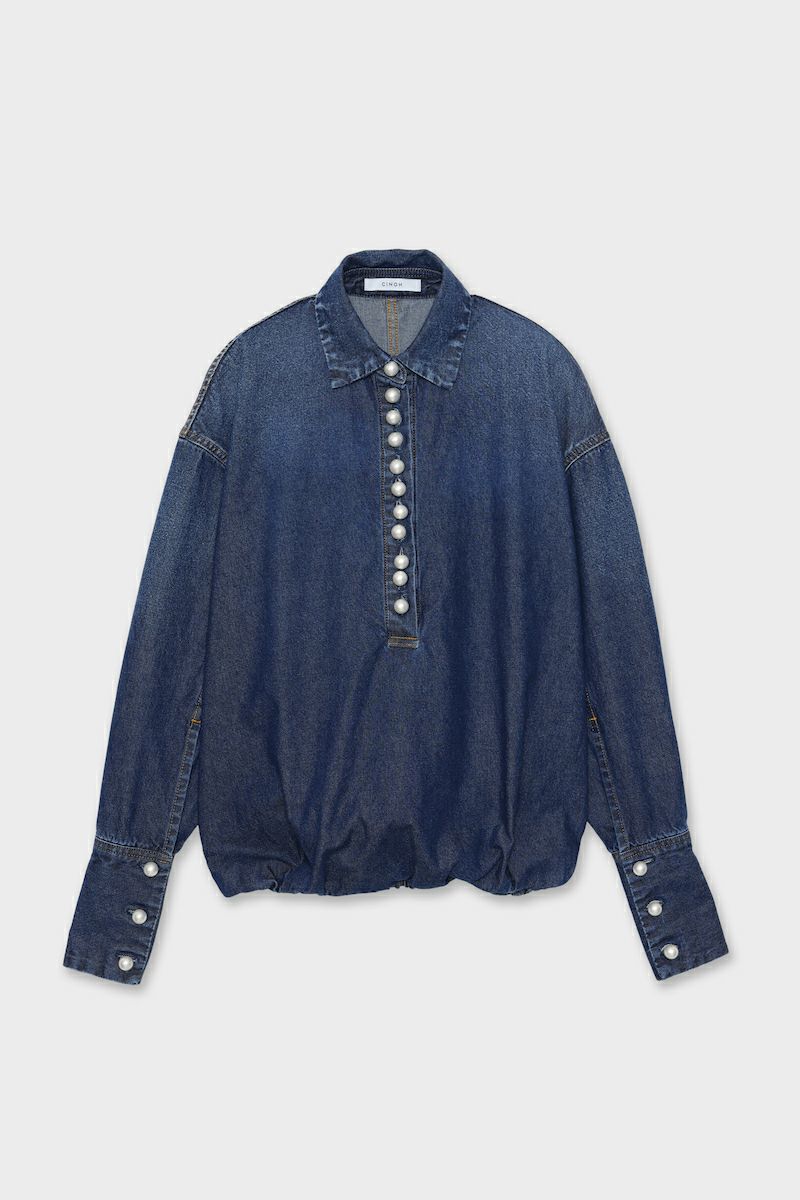 - ブラウジングパールボタンデニムシャツ[M.BLUE]