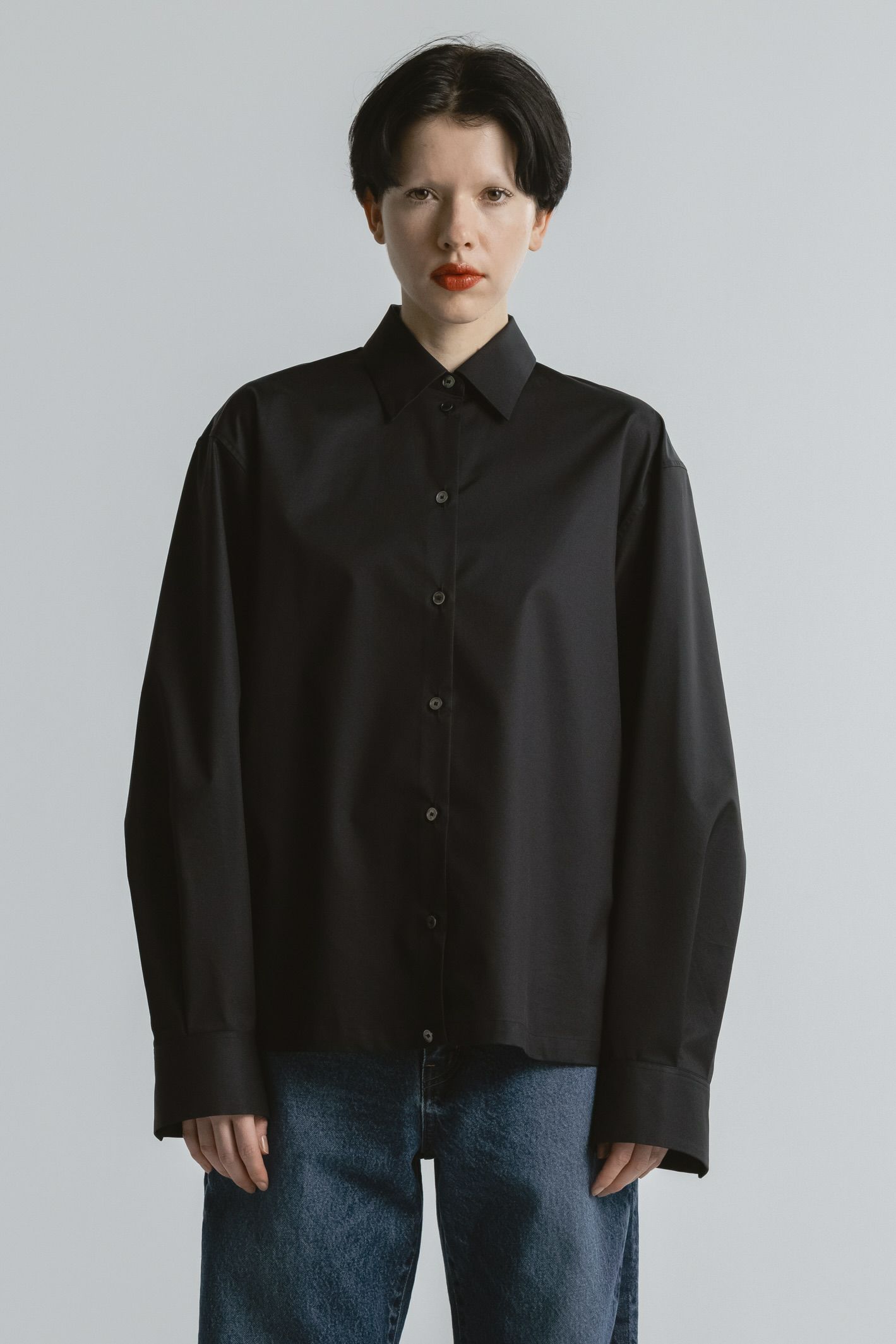 ・背中に立体感のあるたっぷりとしたギャザーを配したシャツ