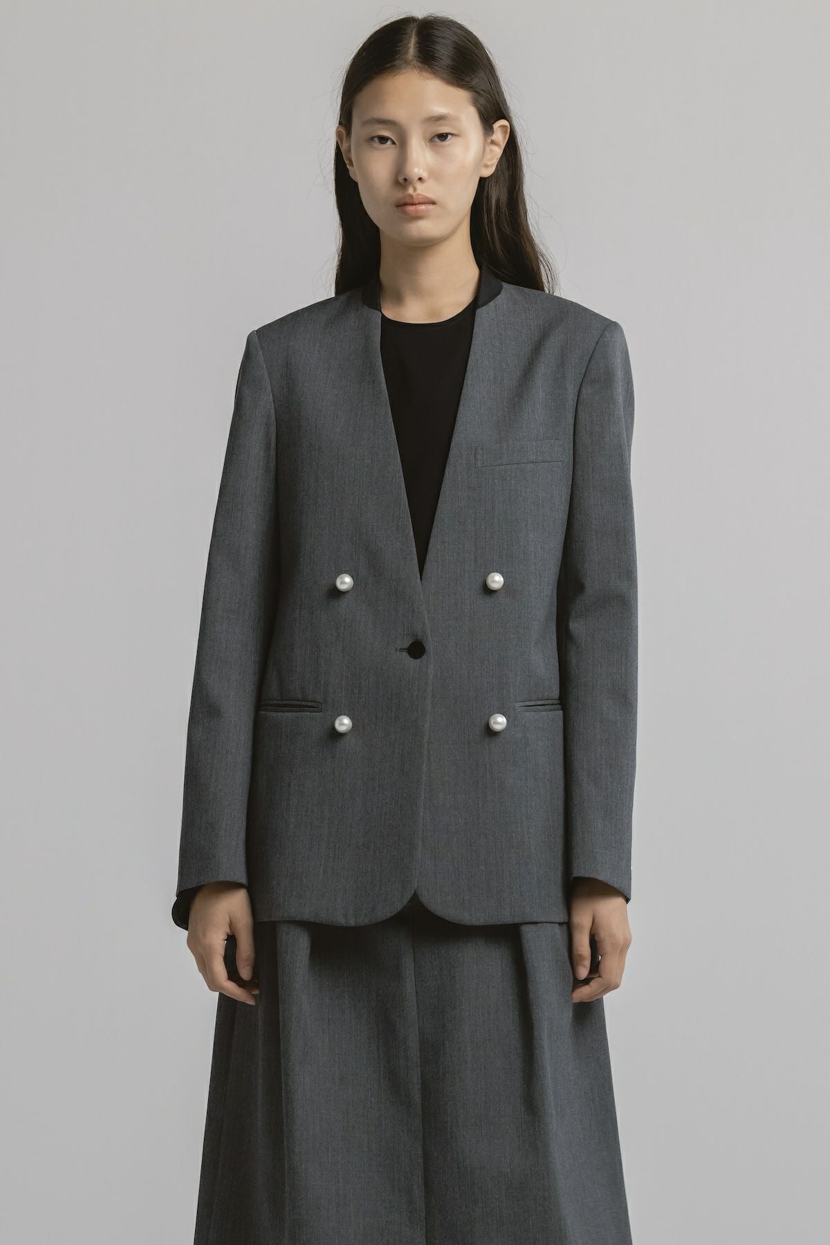 - NO COLLAR JACKET[グレー×パール]