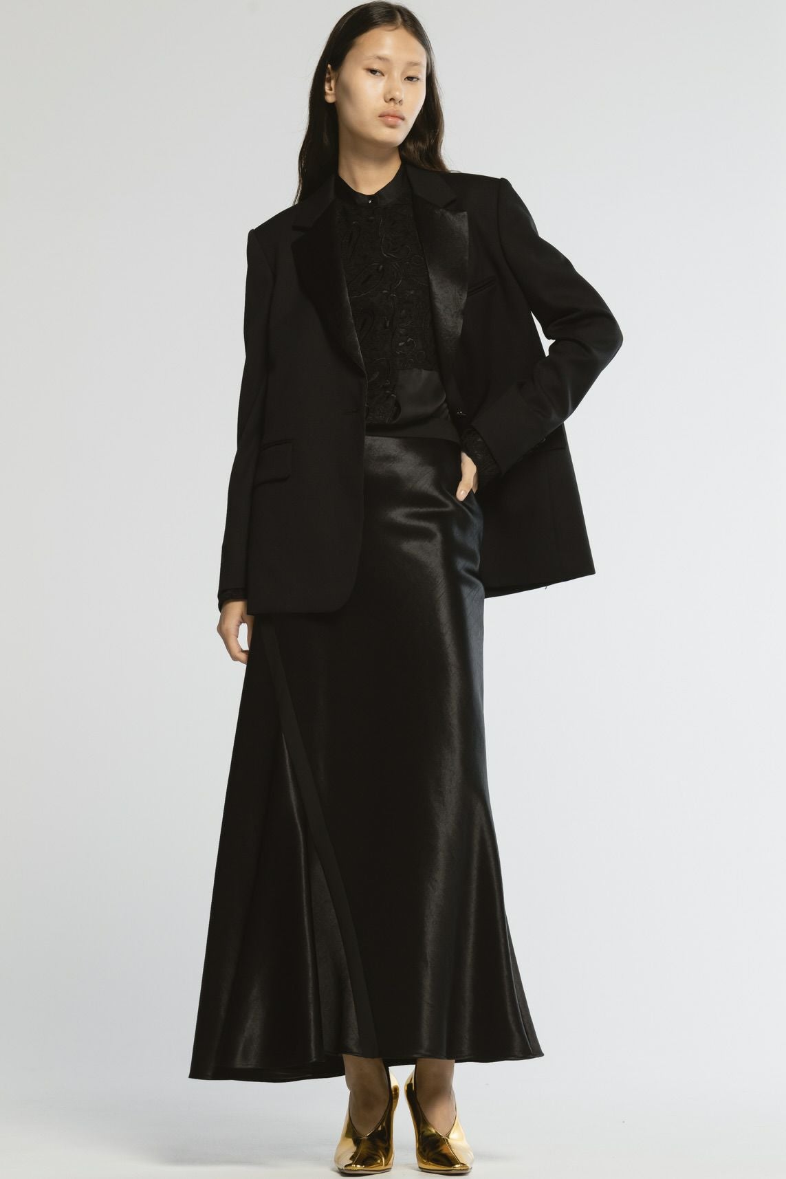 CINOH BLACK FORMAL COLLECTION フォーマルという形式を超え、人生の節目に「自分らしさ」と「品格」を纏う。 体に寄り添う構築的なパターンと、静かな光を宿す素材が生み出す端正な佇まい。 華美な装飾に頼らず、輪郭の美しさで品を表すCINOHの解釈による現代のフォーマルウェアです。 特別な日にも、日常にも。纏う人の内側にある強さと静けさを映し出します。