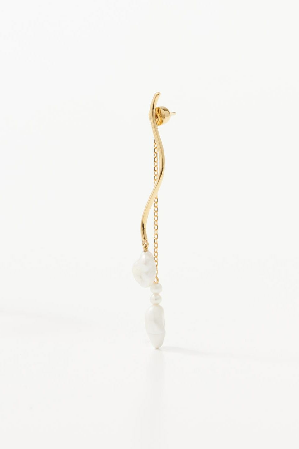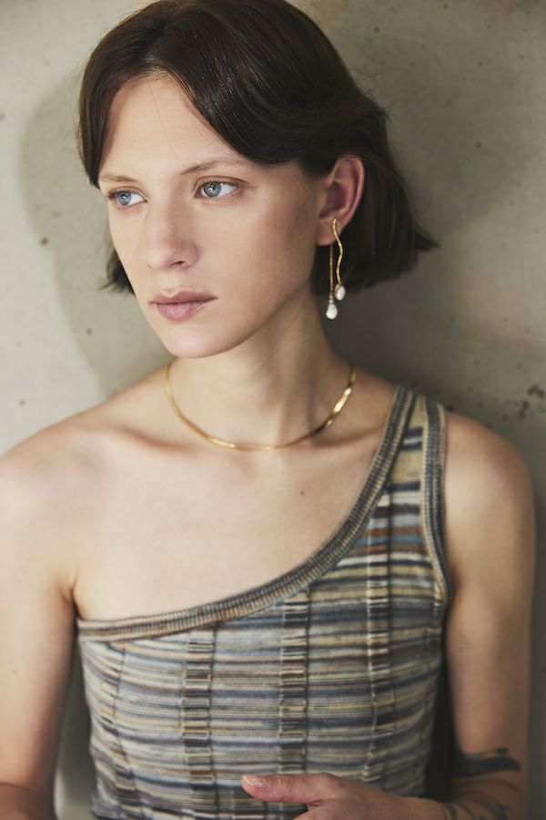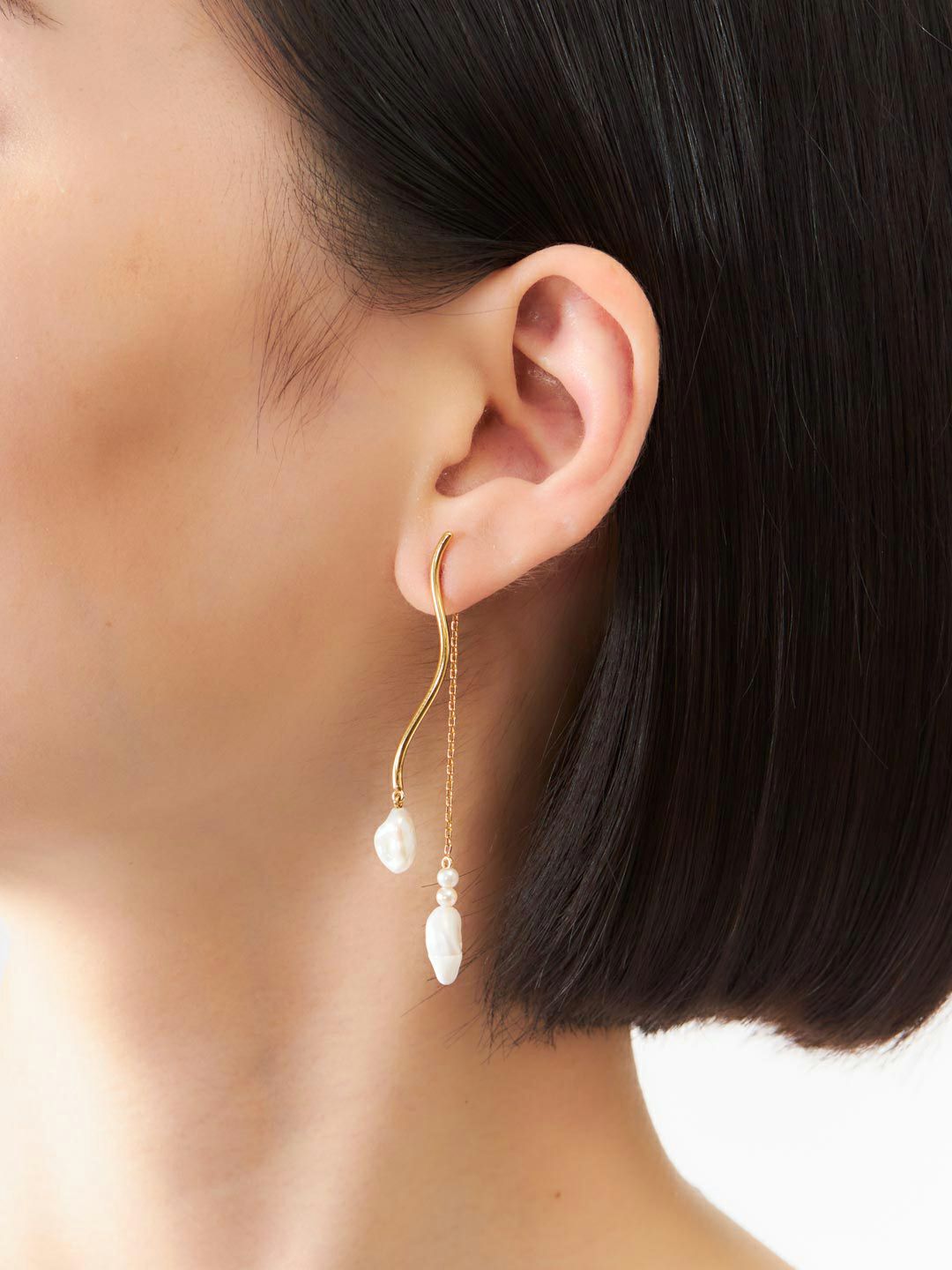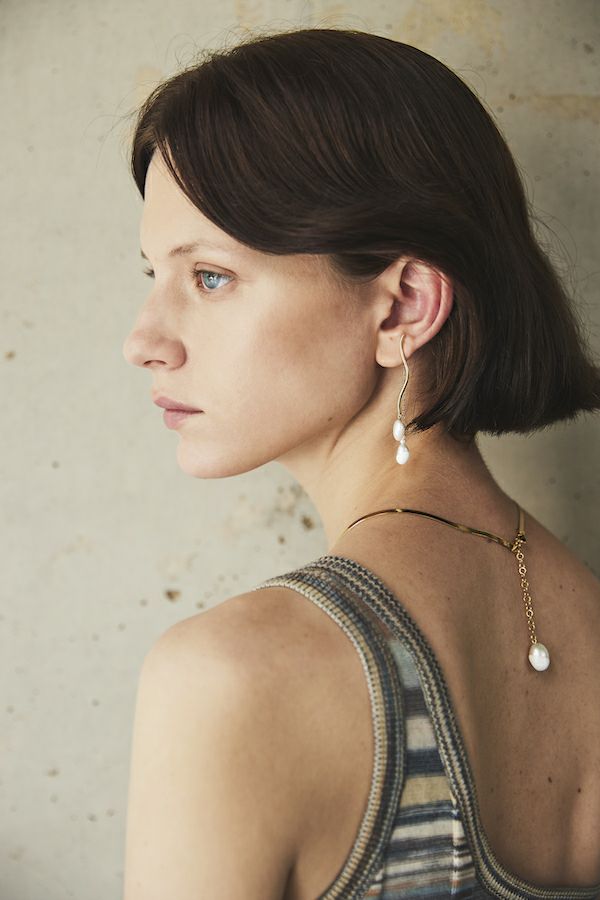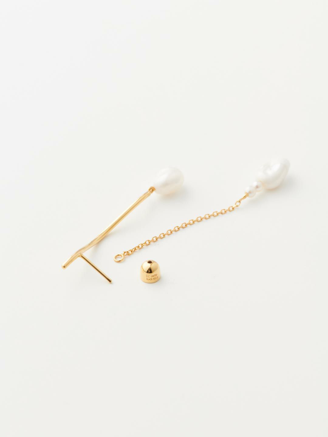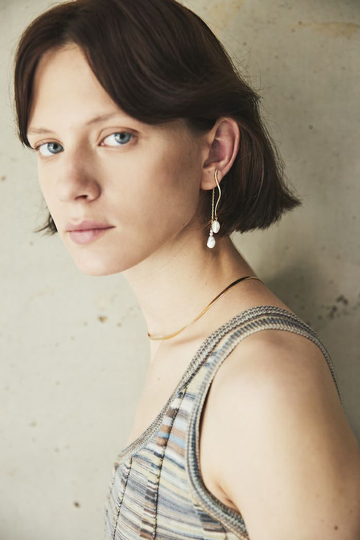 華奢なチェーンを使用したチャームパーツはポストを耳に通したあと耳の後ろから垂れる特徴的な仕様です。