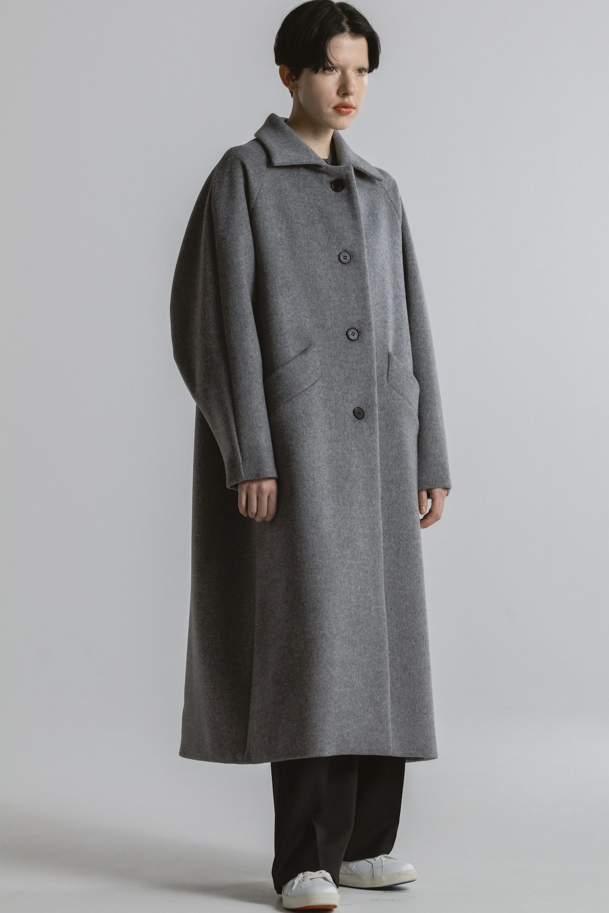 上質な風合いと保温性を兼ね備えたステンカラーコート。