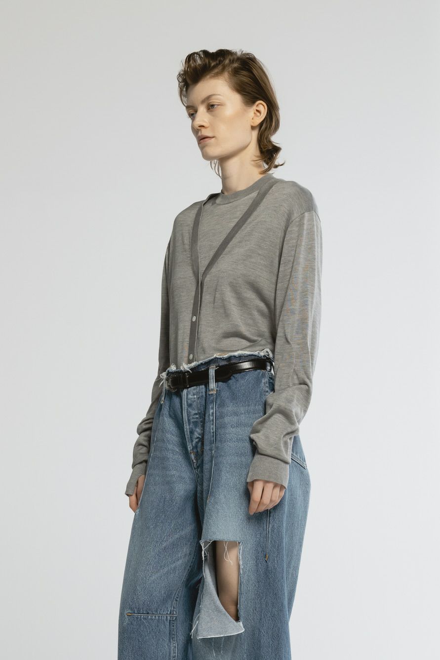 前後どちらを前にしても着用できる2WAYカーディガン。