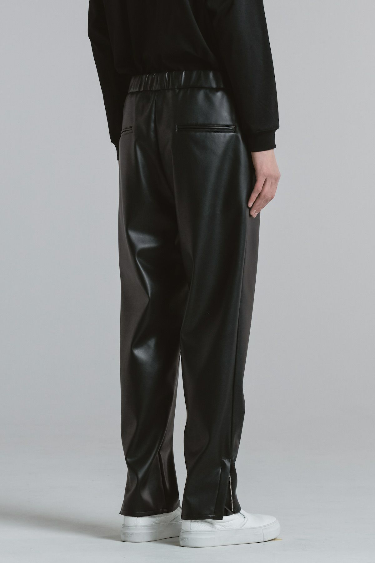 シンセティックレザーリラックスパンツ[BLACK]