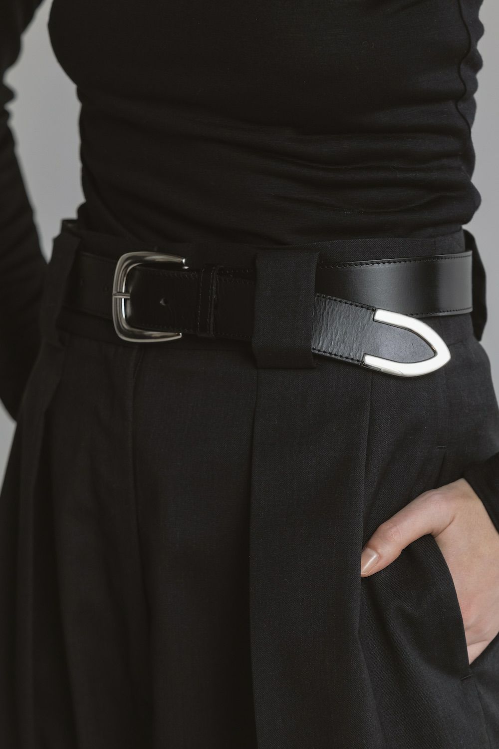 バックルの存在感があるため、シンプルなコーディネートのポイントとして合わせたいアイテムです。