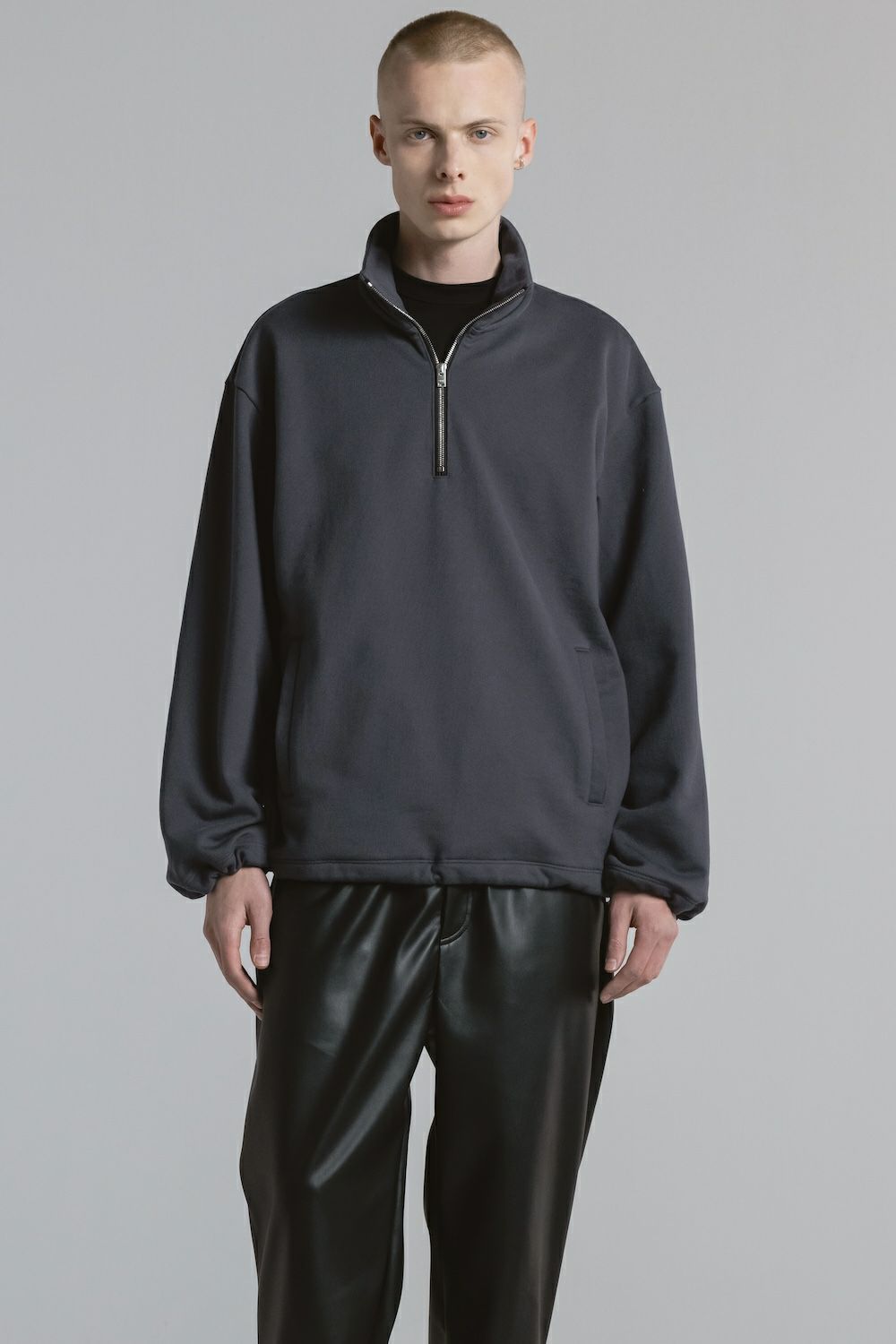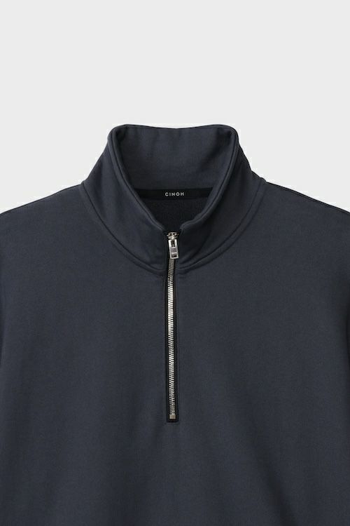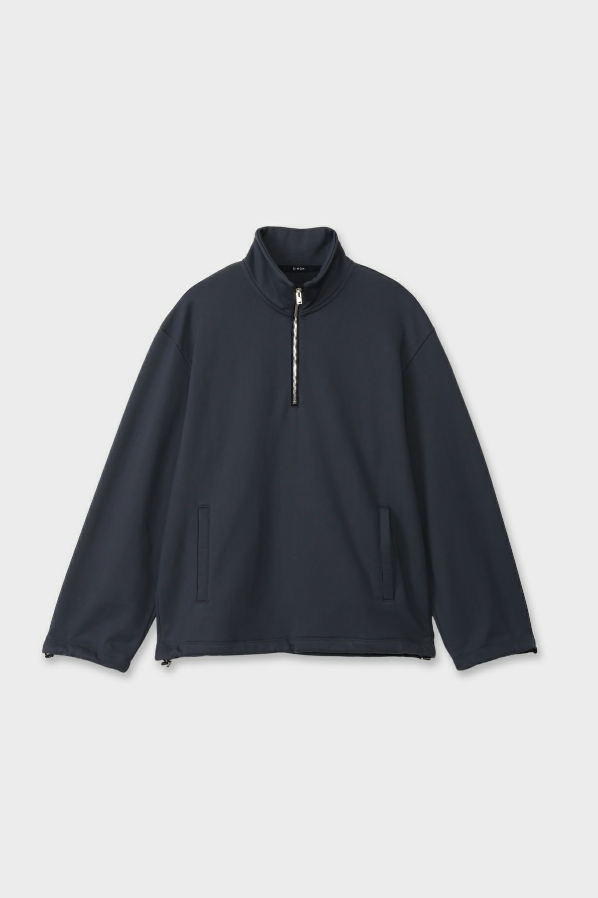 ・ハーフジッププルオーバー ・裾にドローコードを内蔵し、シルエット調整が可能 ・ゆとりあるサイジングながら、素材のハリ感により立体的で洗練された印象に ・サイドポケット付きで利便性も兼ね備えたデザイン ・一枚着としてもアウターインとしても着用可能な、汎用性の高いアイテム