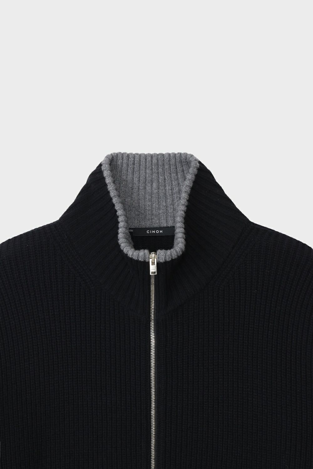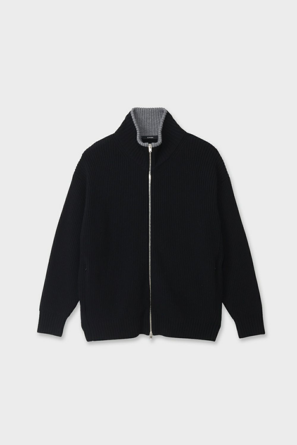 ・ドライバーズニットをベースにしたモダンなデザイン ・程よくゆとりのあるシルエット ・ダブルジップ仕様で着こなしの幅が広がる ・衿裏には配色リブを施し、さりげないアクセントに ・構築的なフォルムで上品さとカジュアルさを両立