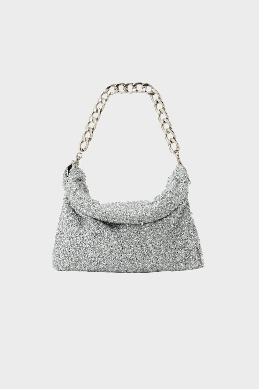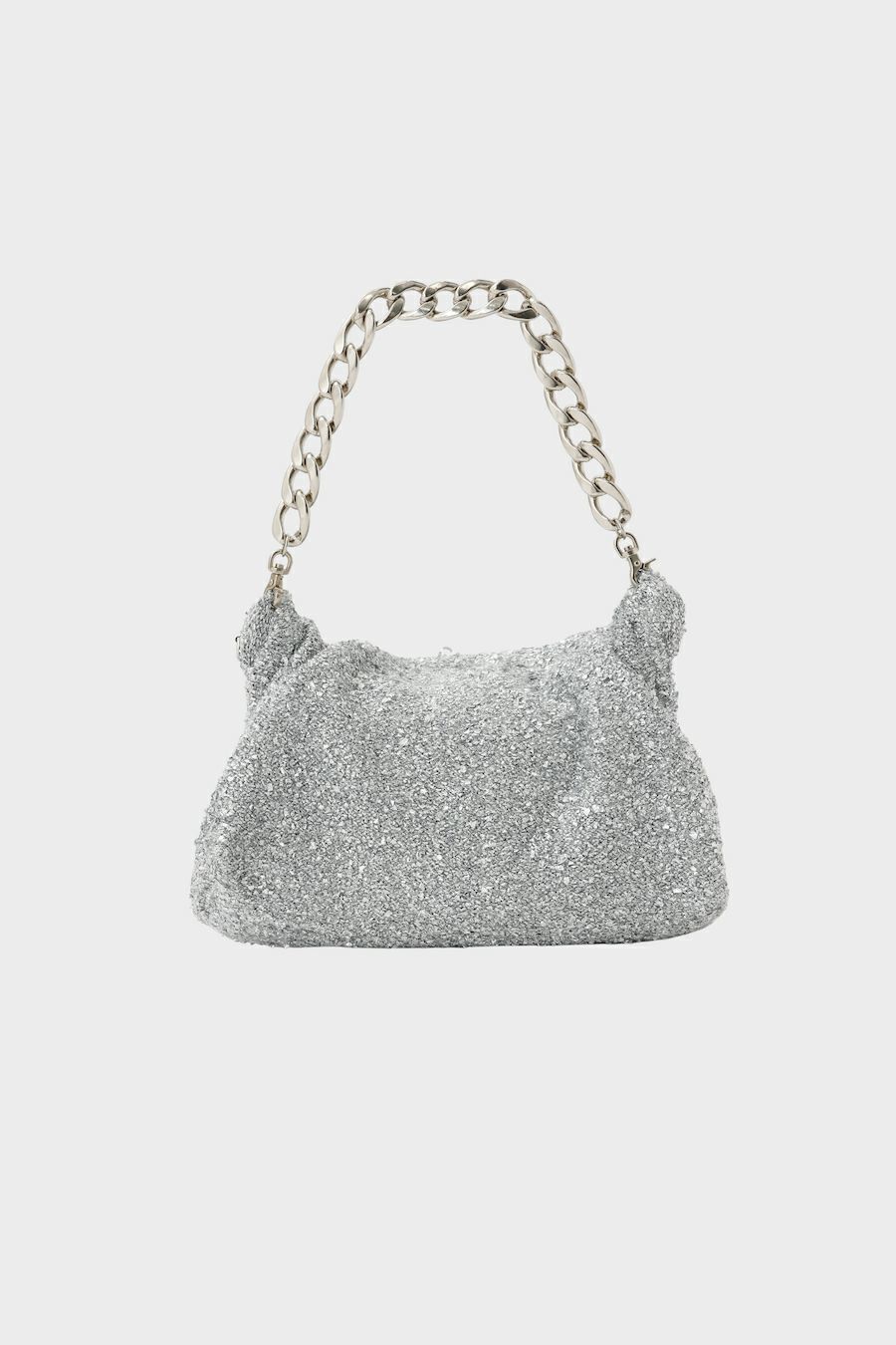 クラッチとしても肩掛けバッグとしても使える、汎用性の高い2WAY仕様のグリッターバッグ。
