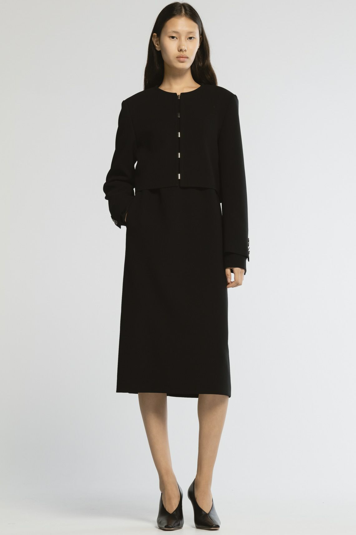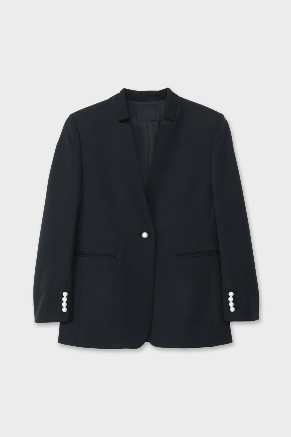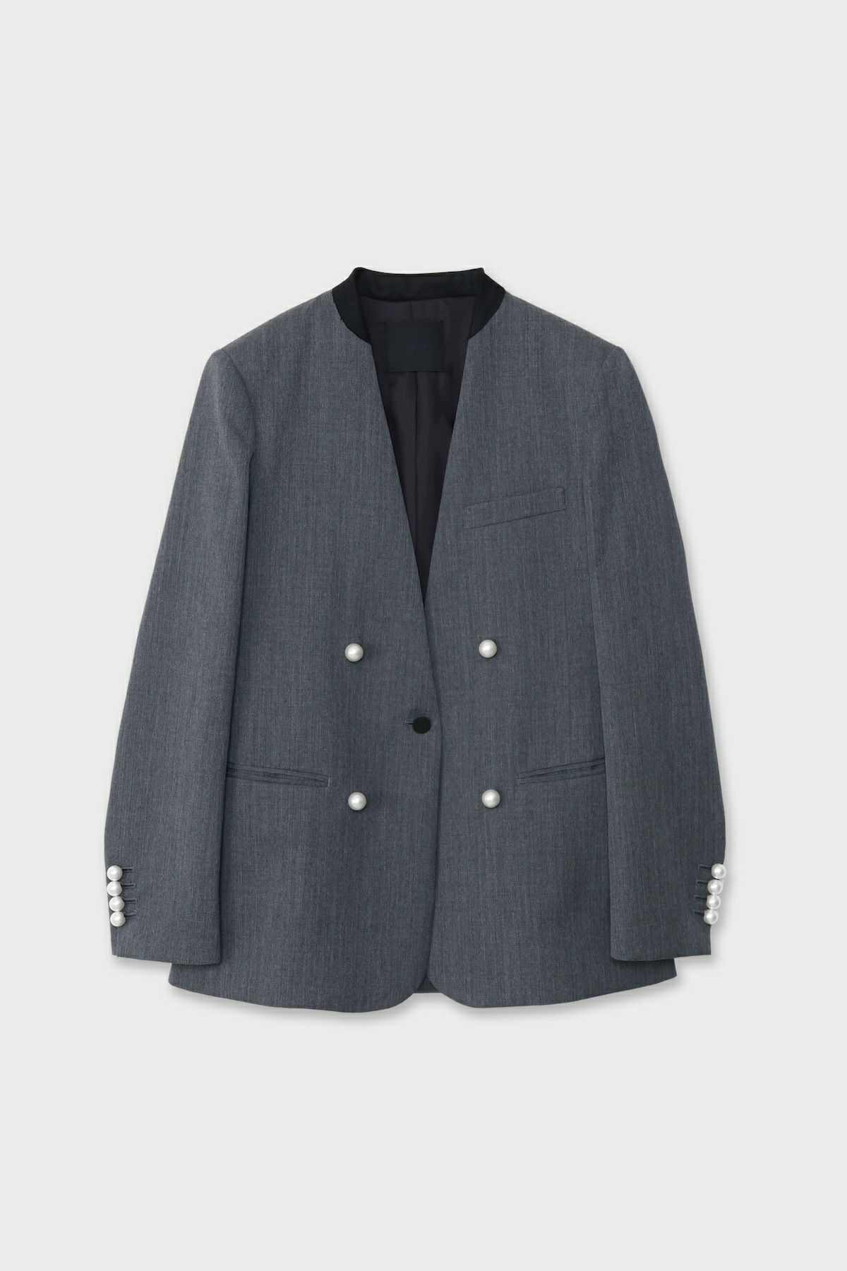 他の画像を見る 2026年1月発売予定 NO COLLAR JACKET[グレー×パール] 当店特別価格 ¥ 69,300 税込 在庫切れ カートに入れる お気に入りに登録する 【取扱い表示】 ・家庭での洗濯禁止 ・塩素系および酸素系漂白剤の使用禁止 ・タンブル乾燥禁止 ・アイロンは中温(底面温度160℃まで)、当て布使用 ・ドライクリーニング弱(石油系溶剤またはデカメチルペンタシクロシロキサン使用可) ・ウエットクリーニング禁止【付記】 ・付属部分には、アイロンをかけないでください ・クリーニングの際は、必ずネットをご使用ください ・付属部分に強い摩擦や衝撃に注意してください