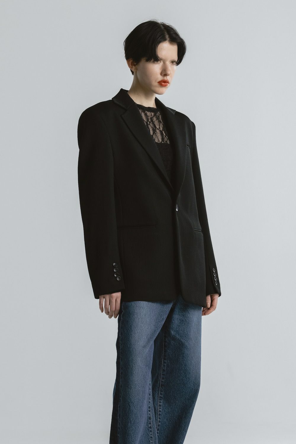 他の画像を見る 2026年1月発売予定 NO COLLAR JACKET[グレー] 当店特別価格 ¥ 69,300 税込 在庫切れ カートに入れる お気に入りに登録する 【取扱い表示】 ・家庭での洗濯禁止 ・塩素系および酸素系漂白剤の使用禁止 ・タンブル乾燥禁止 ・アイロンは中温(底面温度160℃まで)、当て布使用 ・ドライクリーニング弱(石油系溶剤またはデカメチルペンタシクロシロキサン使用可) ・ウエットクリーニング禁止【付記】 ・付属部分には、アイロンをかけないでください ・クリーニングの際は、必ずネットをご使用ください ・付属部分に強い摩擦や衝撃に注意してください