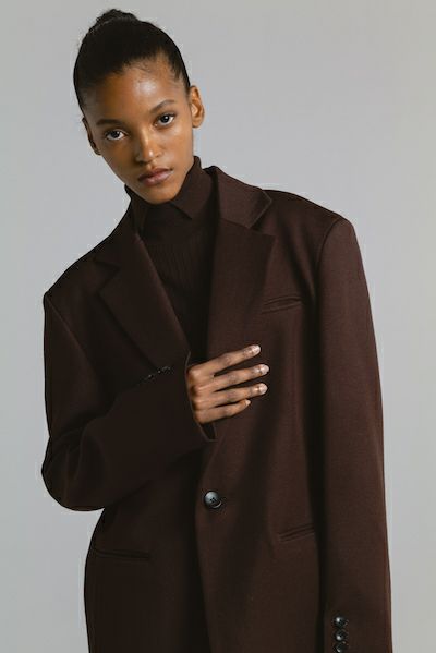 肩まわりに適度なボリュームがあり、36サイズでバランス良く着用できました。背面にあしらわれたボタンディテールが印象的で、後ろ姿にもさりげない個性が宿る一着。マニッシュでありながら華やかさも感じられ、スタイリングの主役として活躍してくれます。インナーダウンや大判ストールを合わせれば、アウター感覚で長いシーズン楽しめます。