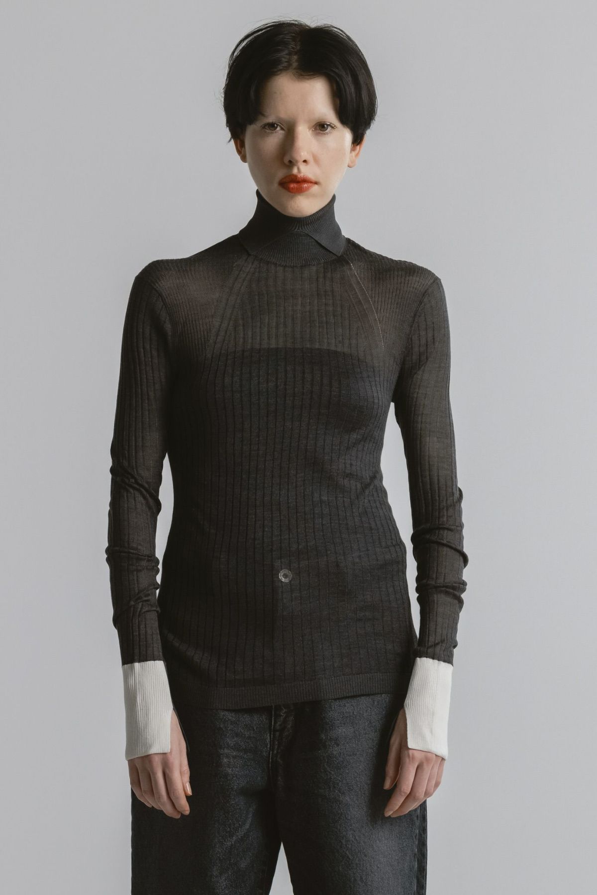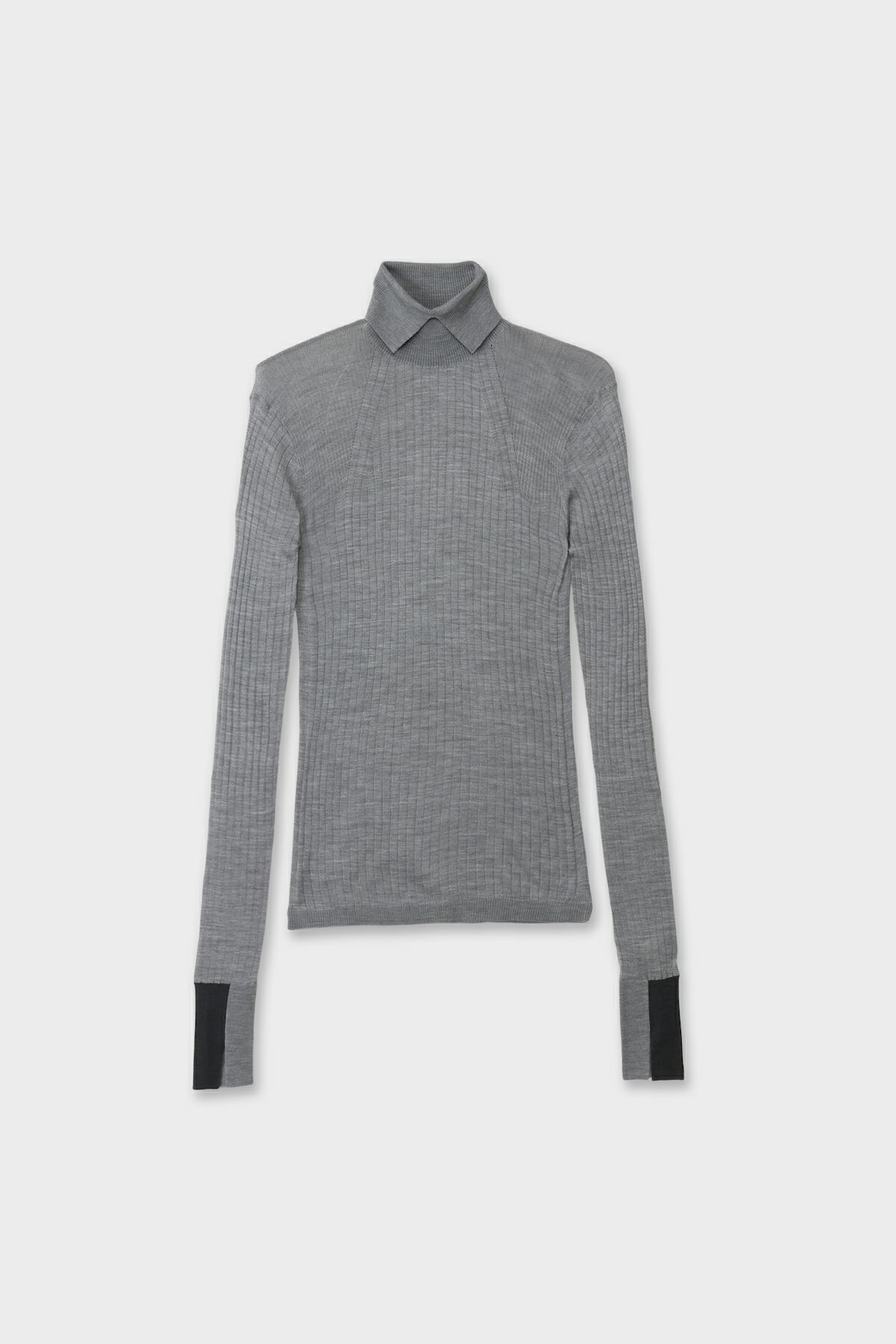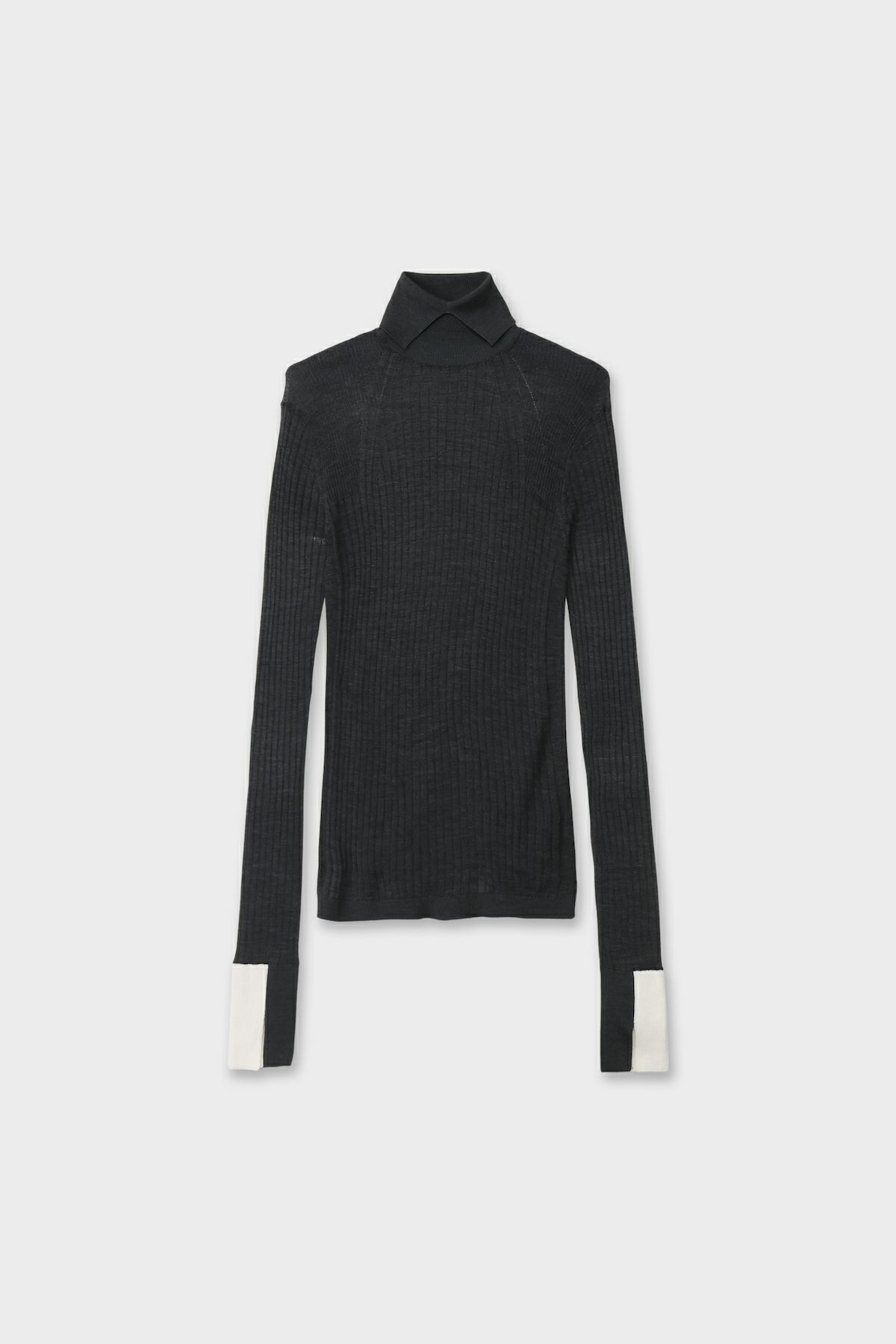シルクタートルネックタイトニット[C.GRAY/WHITE]